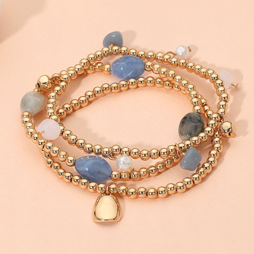 Details • Size : 1" H • Stretchable • This beaded stretch bracelet set features polished metallic beads accented with smooth gemstone-style details and dangling charms. Perfect for stacking or wearing solo, it adds a touch of playful elegance to both casual and dressy outfits. • Lead and Nickel Compliant