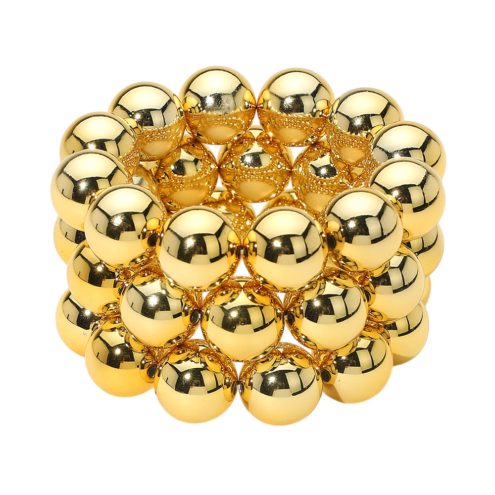 Details • Size : 2.1" H • Stretchable • Eye-catching wide beaded stretch bracelet featuring stacked polished spheres for a bold and fashionable look. Perfect for making a statement, this versatile piece enhances casual outfits and elegant ensembles alike. • Lead and Nickel Compliant