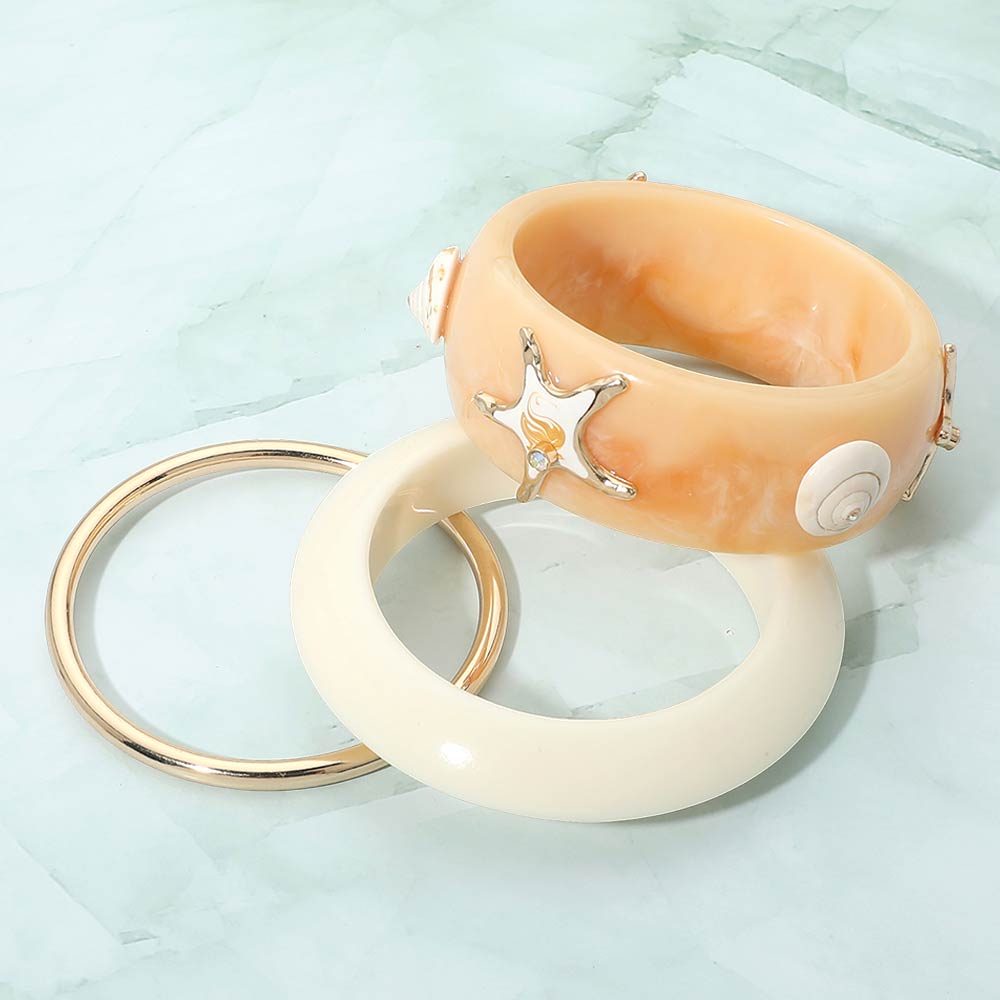 3PCS - Bold Starfish Accent Resin Multi Layered Bangle Bracelets 3PCS - Bold Starfish Accent Resin Multi Layered Bangle Bracelets 3PCS - Bold Starfish Accent Resin Multi Layered Bangle Bracelets