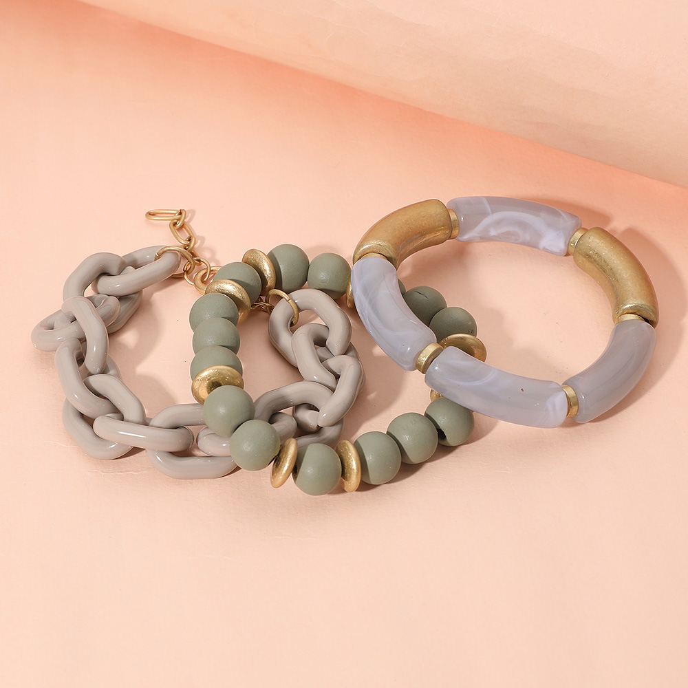 3PCS - Bold Wooden Mixed Beaded Stretch Resin Link Multi Layered Bracelets 3PCS - Bold Wooden Mixed Beaded Stretch Resin Link Multi Layered Bracelets 3PCS - Bold Wooden Mixed Beaded Stretch Resin Link Multi Layered Bracelets