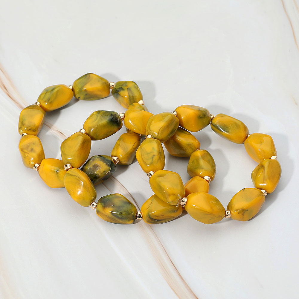 3PCS - Chunky Marbled Pebble Beaded Stretch Multi Layered Bracelets