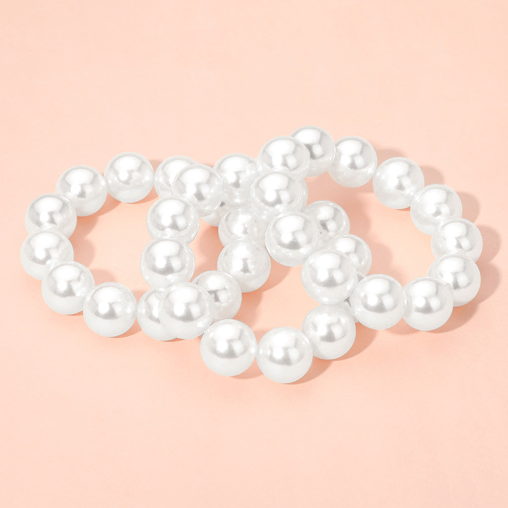 7PCS - Pearl Metal Ball Beaded Stretch Multi Layered Bracelets