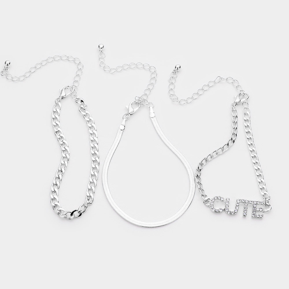 3PCS - CUTE Rhinestone Embellished Metal Chain Bracelets