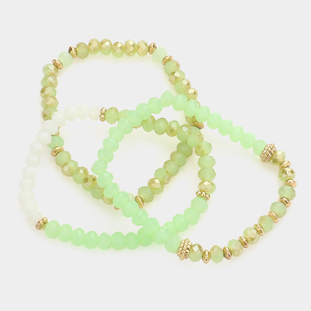 3PCS - Faceted bead strand stack stretch bracelets