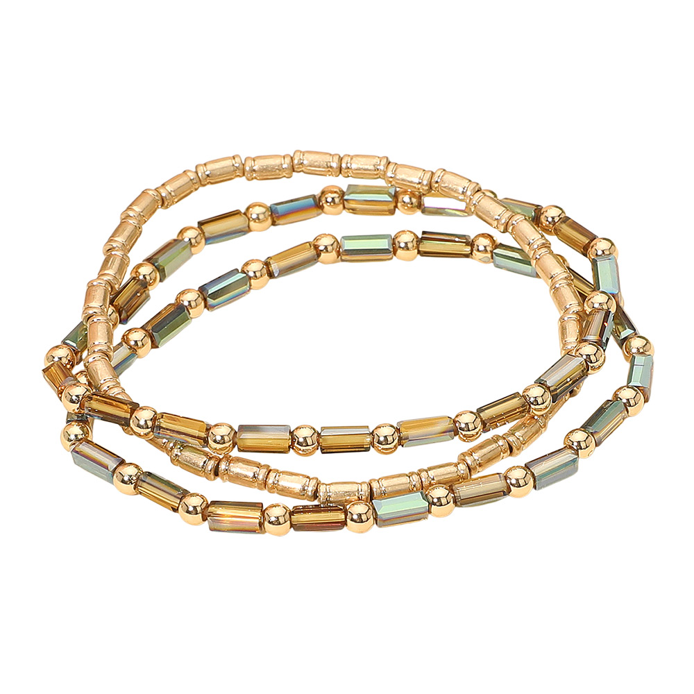 3PCS - Faceted Tube Beaded Stretch Multi Layered Bracelets