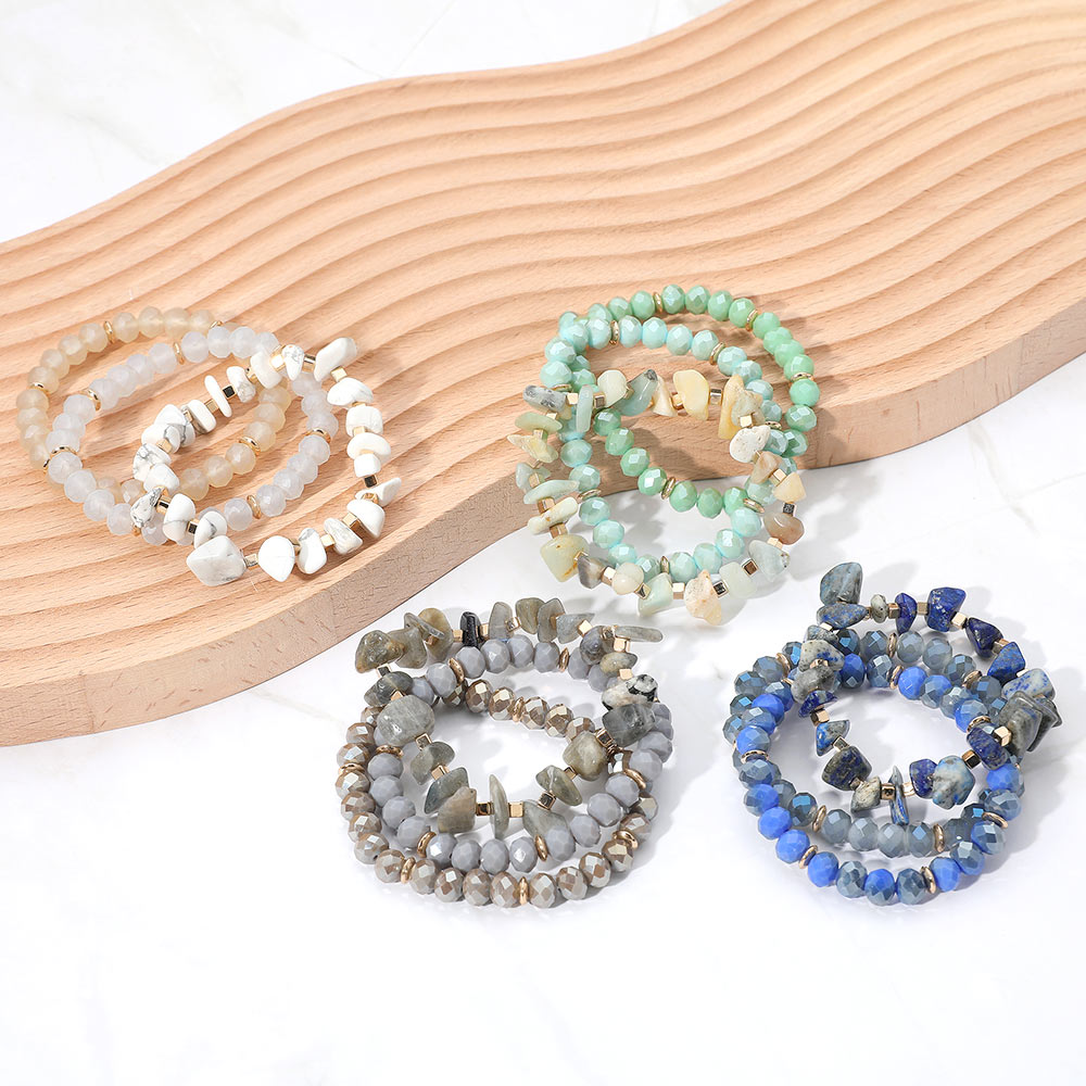 3PCS - Natural Stone Faceted Beaded Stretch Multi Layered Bracelets
