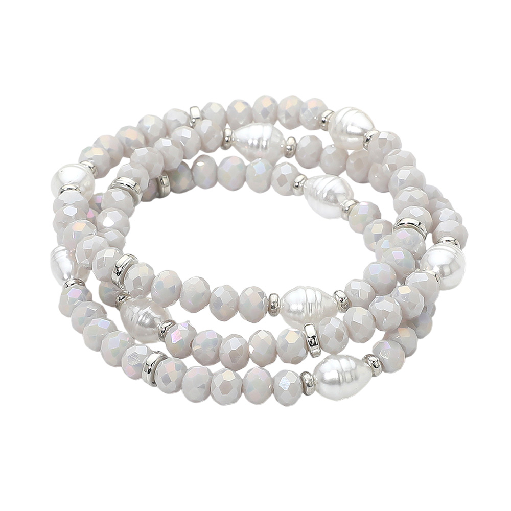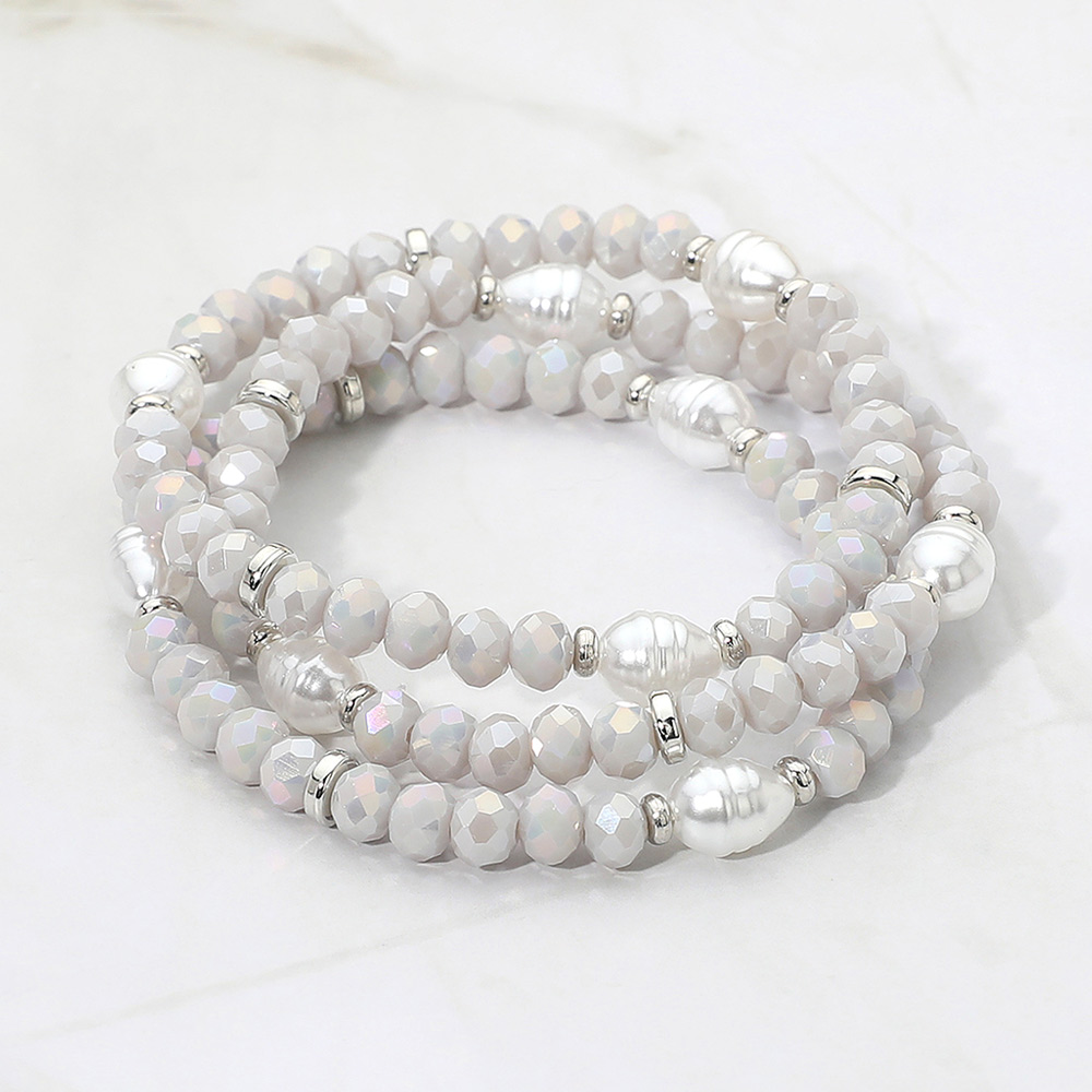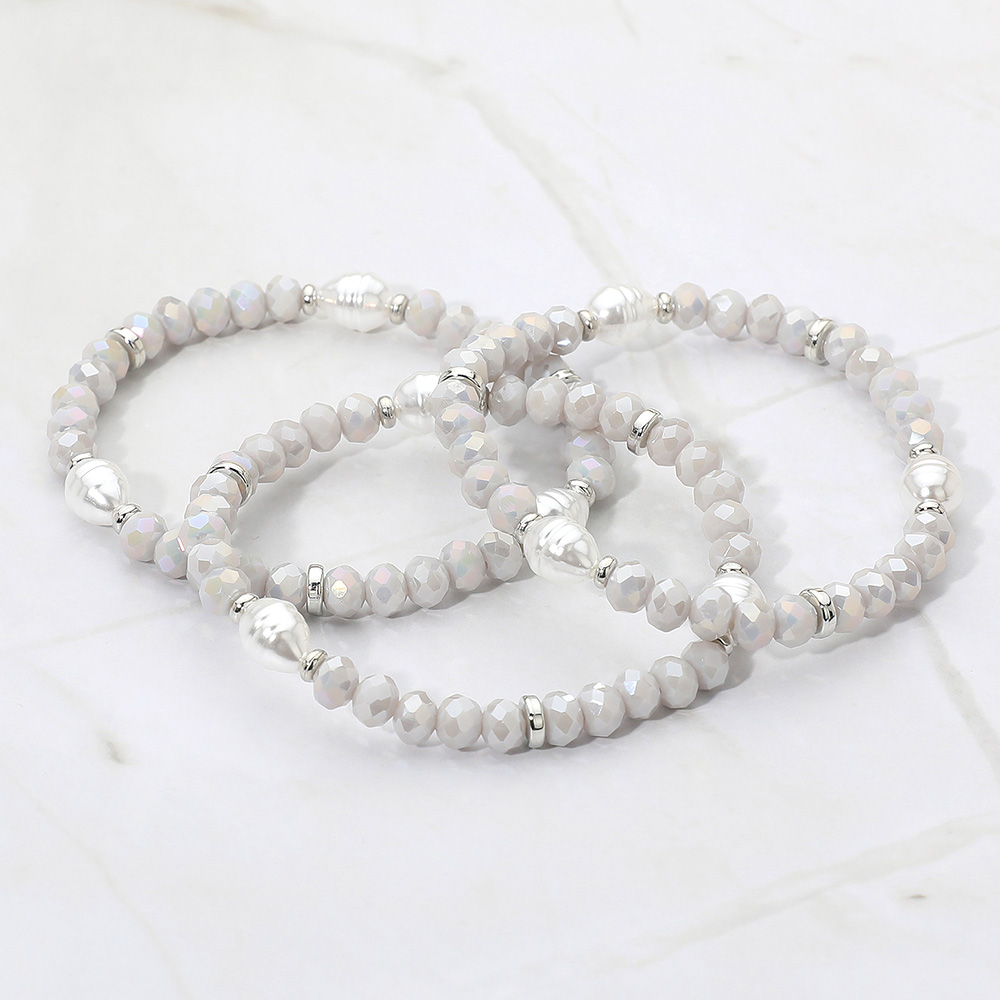 3PCS - Pearl Faceted Beaded Stretch Multi Layered Bracelets