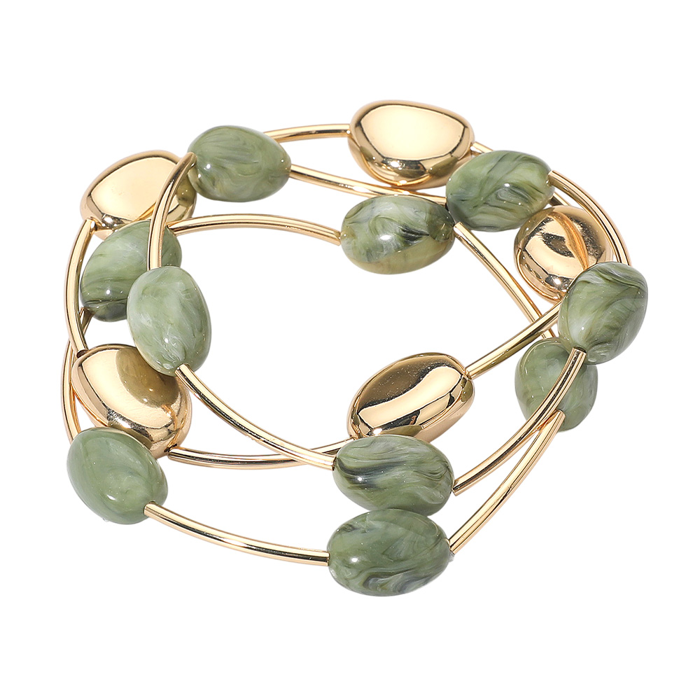 3PCS - Resin Metal Pebble Wire Beaded Stretch Multi Layered Bracelets