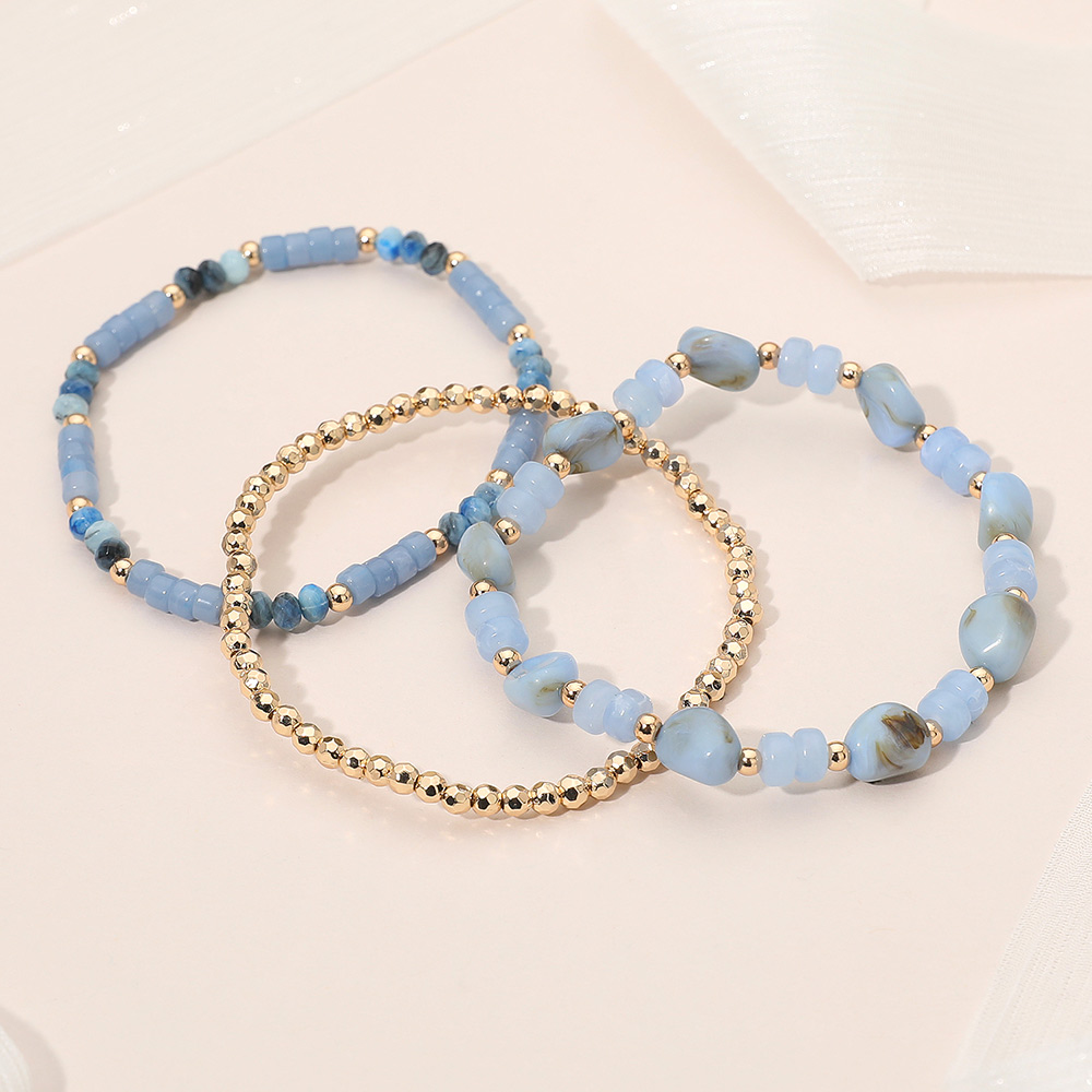 3PCS - Resin Pebble Metal Ball Beaded Stretch Multi Layered Bracelets