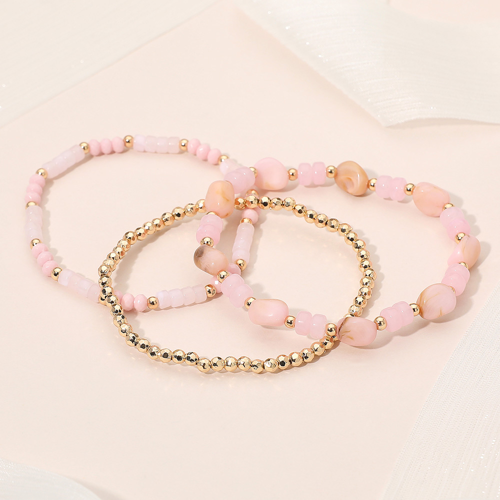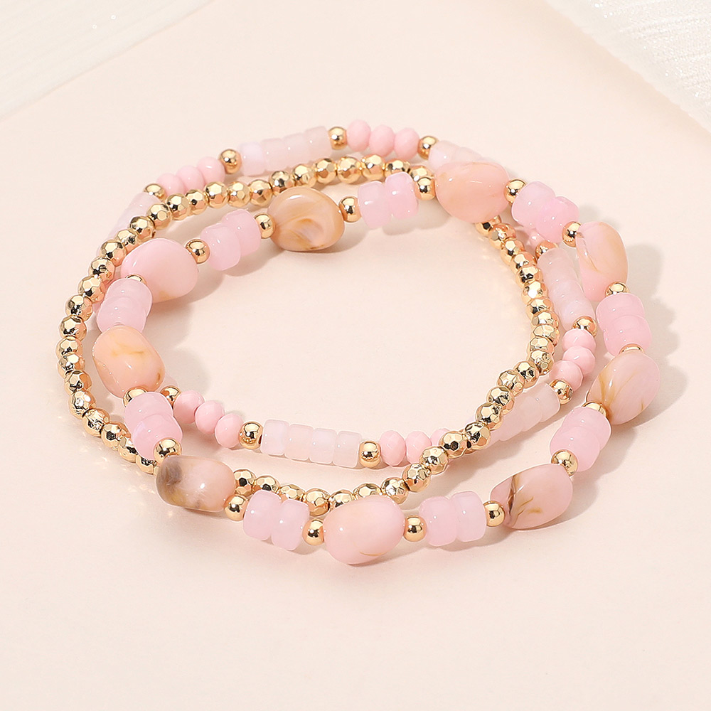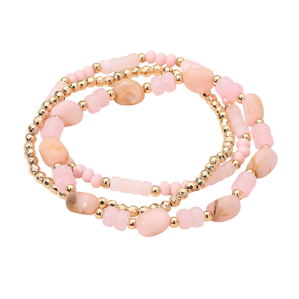 3PCS - Resin Pebble Metal Ball Beaded Stretch Multi Layered Bracelets