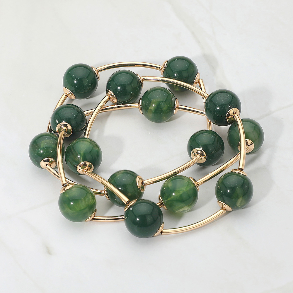 3PCS - Round Ball Wire Beaded Stretch Multi Layered Bracelets