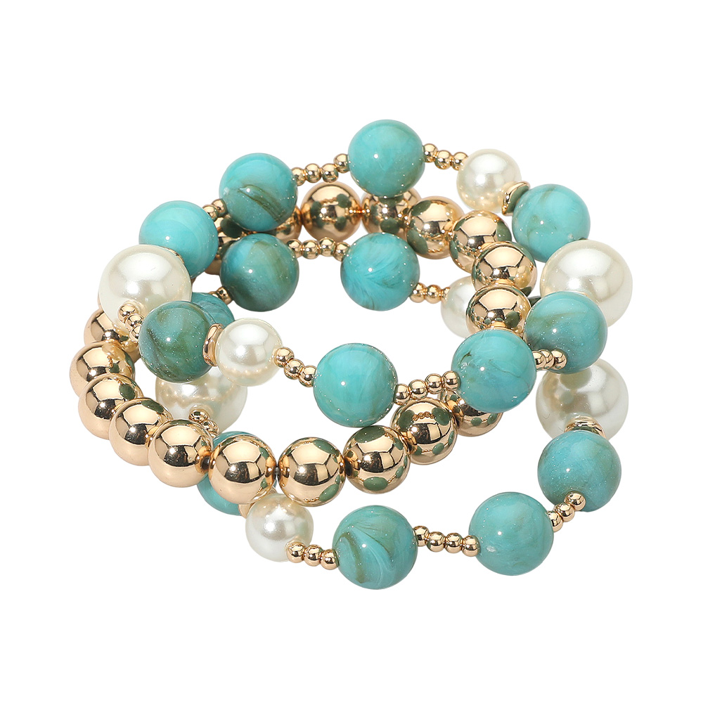 3PCS - Round Pearl Mixed Beaded Stretch Multi Layered Bracelets 3PCS - Round Pearl Mixed Beaded Stretch Multi Layered Bracelets 3PCS - Round Pearl Mixed Beaded Stretch Multi Layered Bracelets