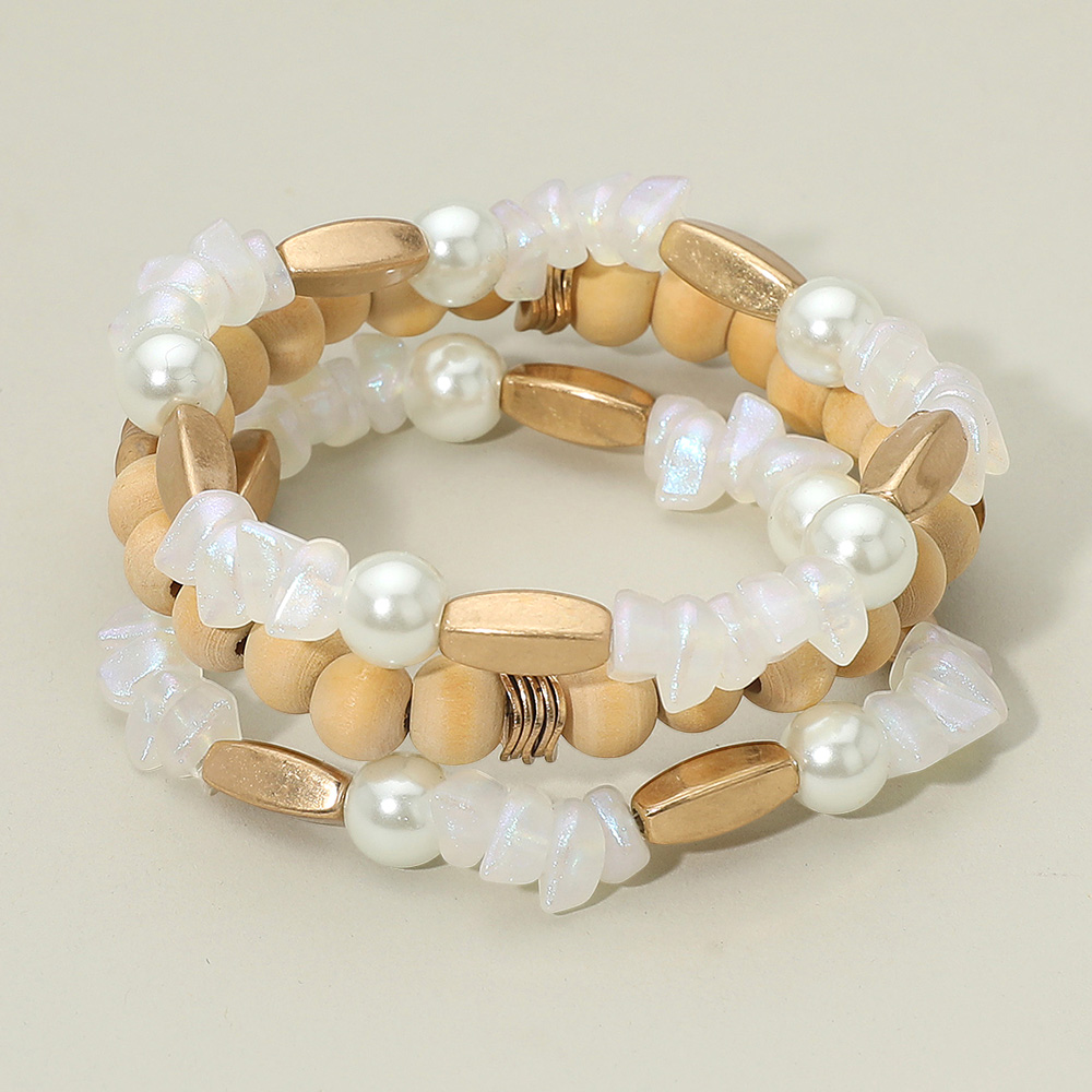 Details • Size : 1" H • Stretchable • Complete your look with this elegant beaded stretch bracelet set featuring smooth beads, shell-like chips, and metallic accents. Designed for easy layering or solo wear, this versatile bracelet adds a touch of sophistication to both everyday and special occasion outfits. • Lead and Nickel Compliant