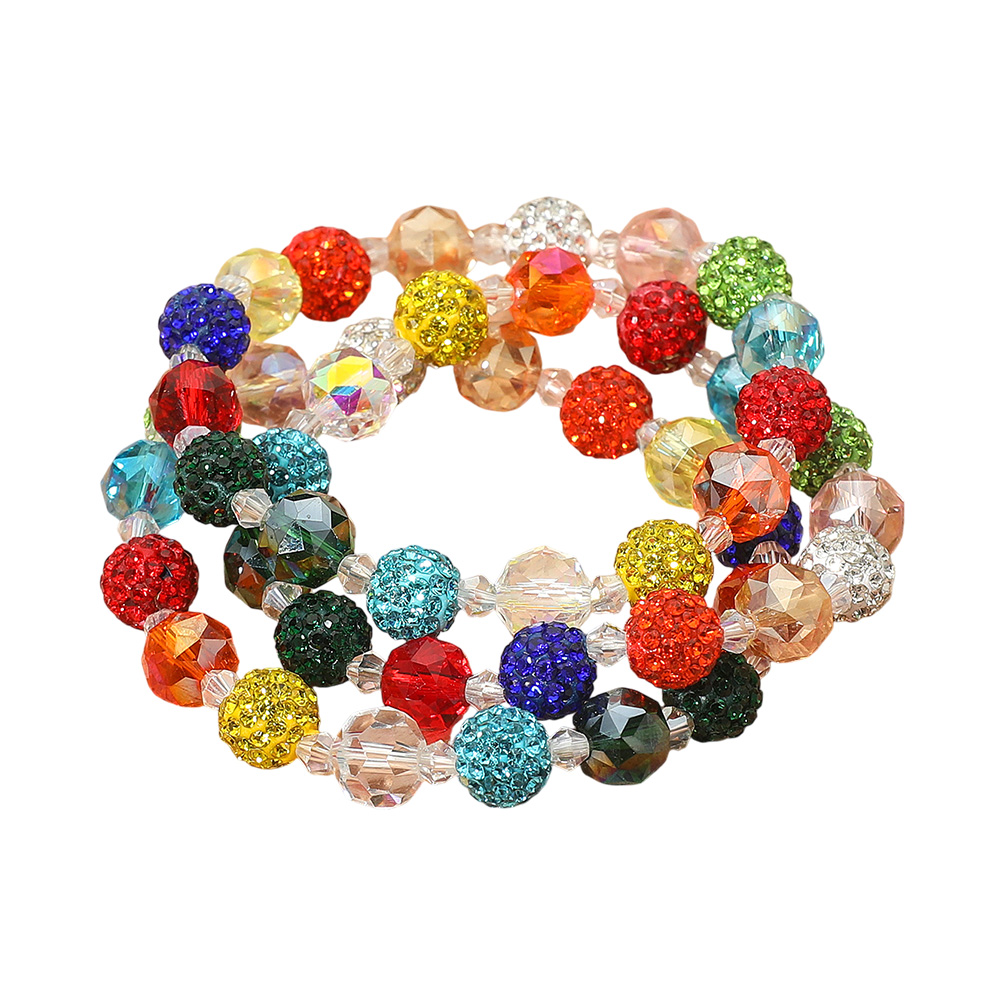 3PCS - Shamballa Ball Faceted Beaded Stretch Multi Layered Bracelets