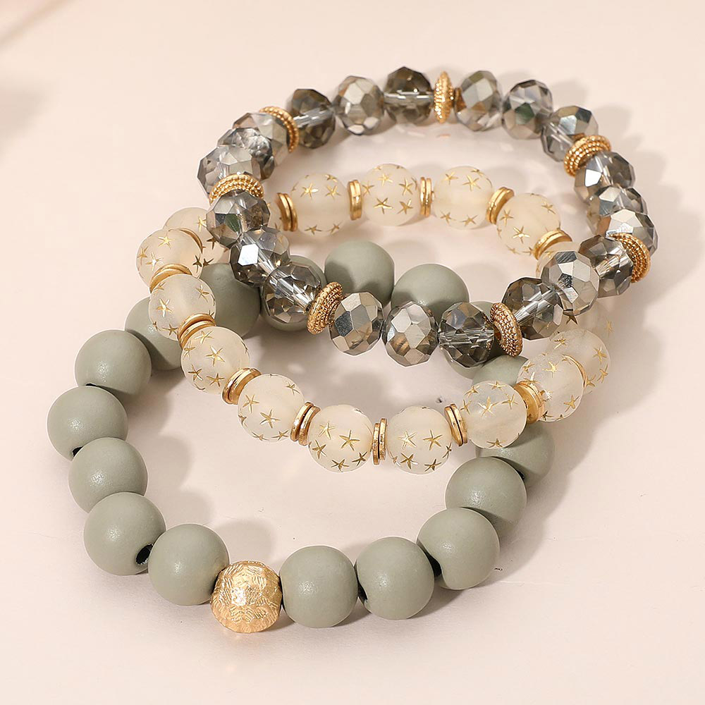 • Stylish stackable bracelet set featuring mixed bead sizes, faceted accents, and decorative spacer details. Designed for easy layering, this stretch bracelet trio adds a chic, textured touch to everyday outfits or special occasions.
