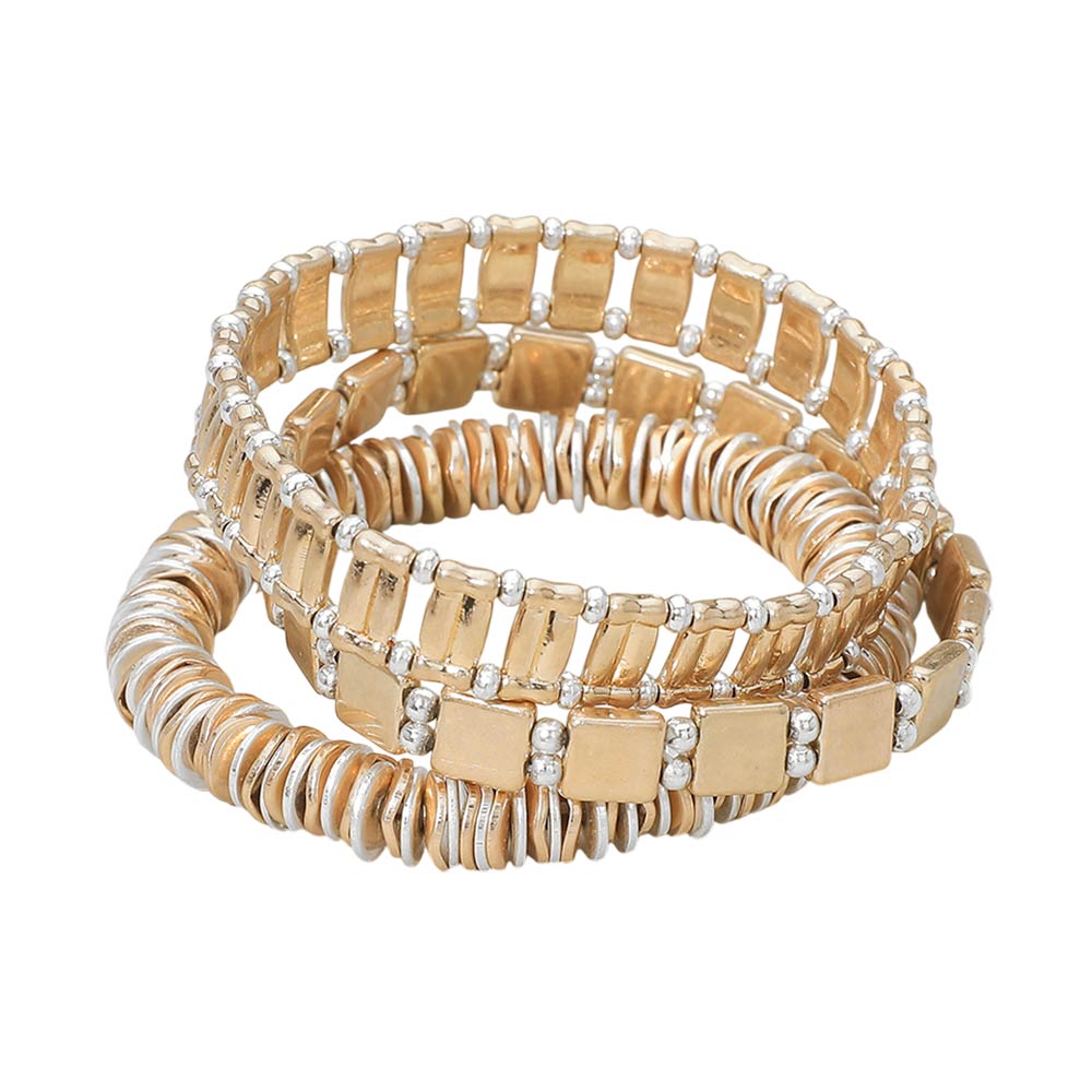 3PCS - Two Tone Metal Various Beaded Stretch Multi Layered Bracelets 3PCS - Two Tone Metal Various Beaded Stretch Multi Layered Bracelets 3PCS - Two Tone Metal Various Beaded Stretch Multi Layered Bracelets 3PCS - Two Tone Metal Various Beaded Stretch Multi Layered Bracelets