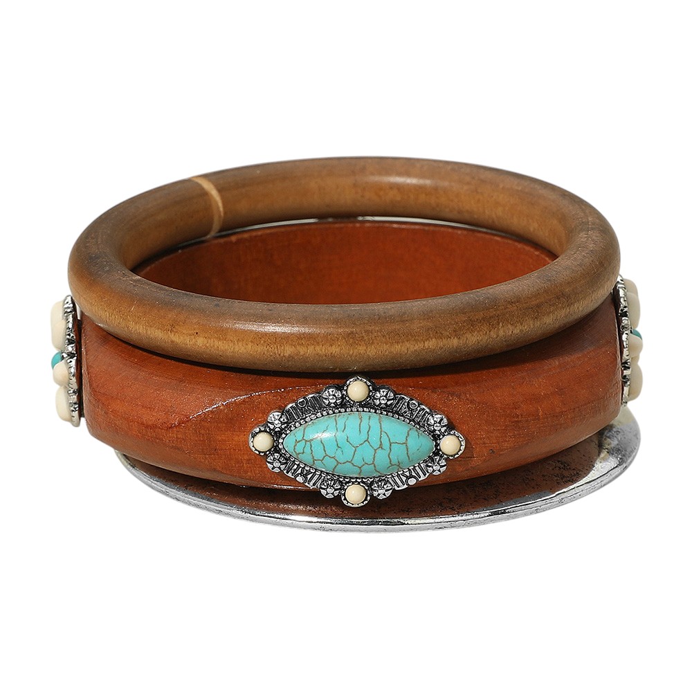 3PCS - Western Oval Turquoise Stone Accent Stackable Wooden Bangle Multi Layered Bracelets 3PCS - Western Oval Turquoise Stone Accent Stackable Wooden Bangle Multi Layered Bracelets 3PCS - Western Oval Turquoise Stone Accent Stackable Wooden Bangle Multi Layered Bracelets