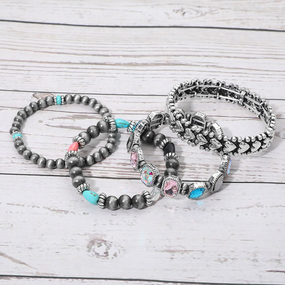 4PCS - Vintage Gem Beaded Stretch Multi Layered Bracelets