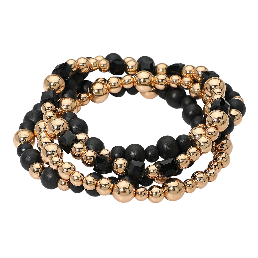 4PCS- Wooden Metal Ball Beaded Stretch Multi Layered Bracelets 4PCS- Wooden Metal Ball Beaded Stretch Multi Layered Bracelets 4PCS- Wooden Metal Ball Beaded Stretch Multi Layered Bracelets