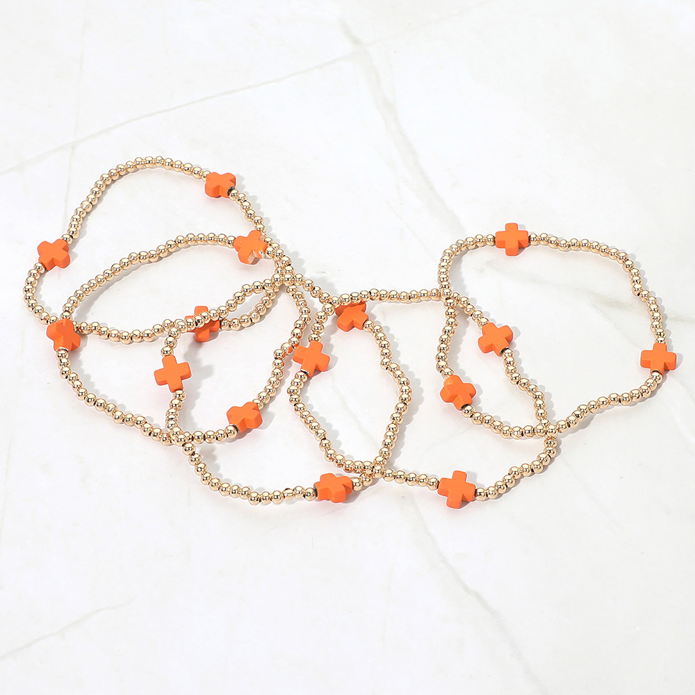 5PCS - Cross Pointed Metal Ball Beaded Stretch Multi Layered Bracelets