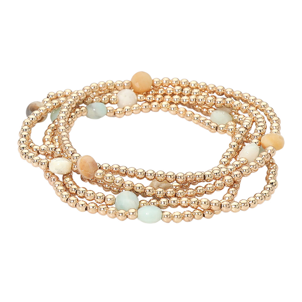 Details • Size : 1.25" H • Stretchable • This multi strand stretch bracelet set features layered beaded designs accented with smooth round details for a refined, everyday look. Easy to wear and stack, it offers a balanced blend of texture and simplicity, making it ideal for daily styling, gifting, or boutique accessory collections. • Lead and Nickel Compliant
