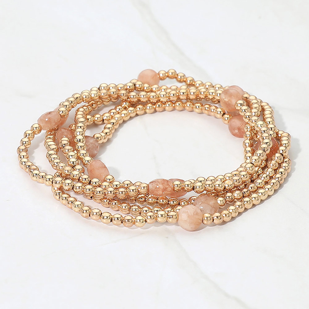 • This multi strand stretch bracelet set features layered beaded designs accented with smooth round details for a refined, everyday look. Easy to wear and stack, it offers a balanced blend of texture and simplicity, making it ideal for daily styling, gifting, or boutique accessory collections.