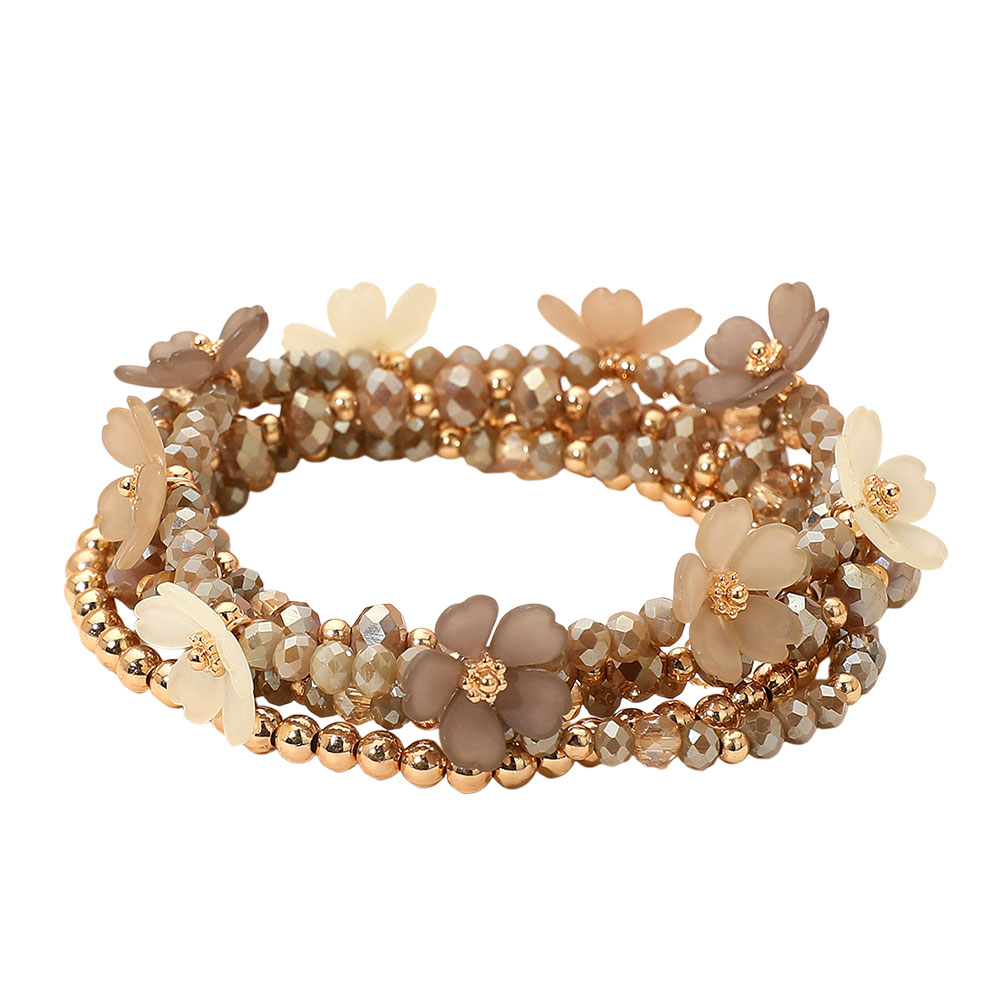 5PCS - Floral Faceted Beaded Stretch Multi Layered Bracelets