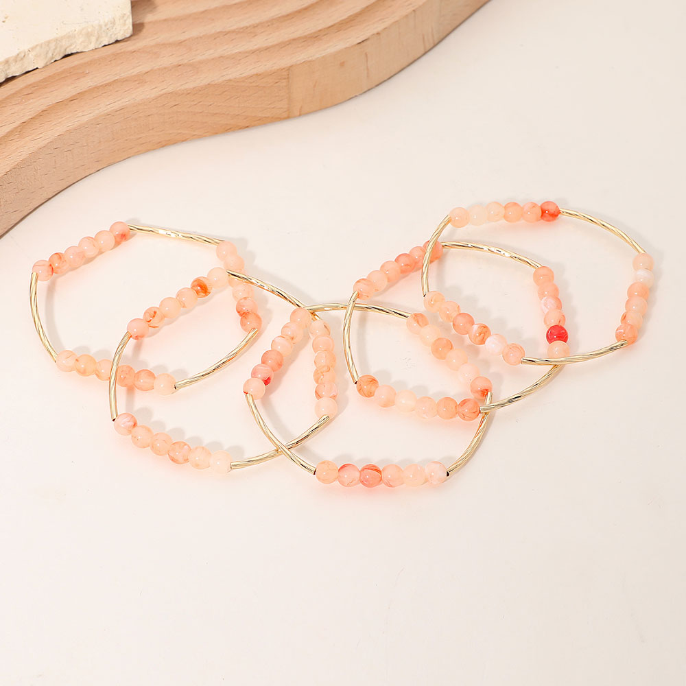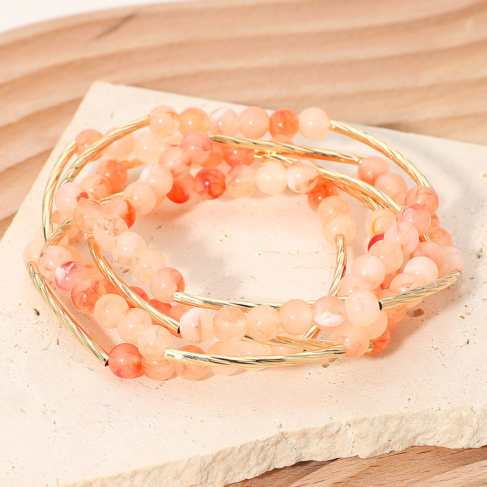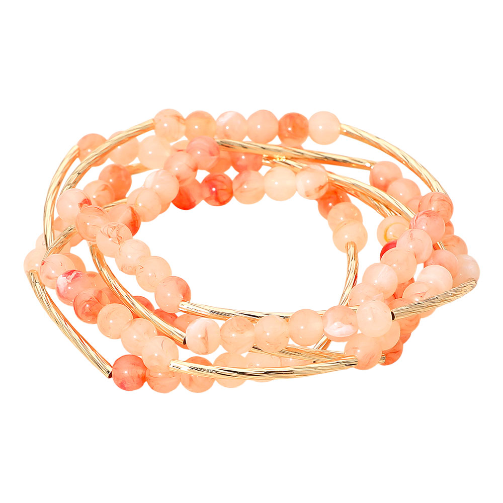5PCS -Round Ball Curved Textured Bar Beaded Stretch Multi Layered Bracelets