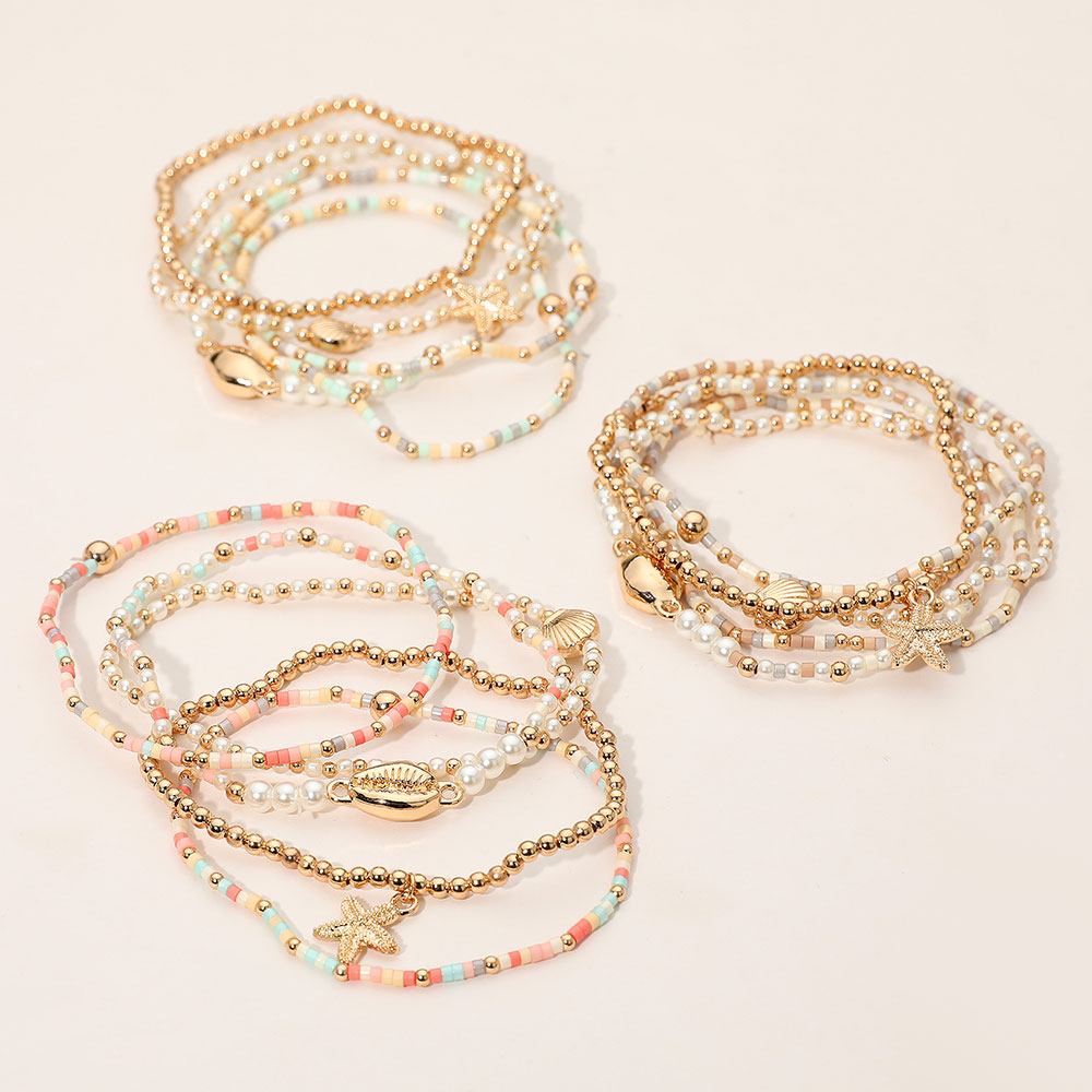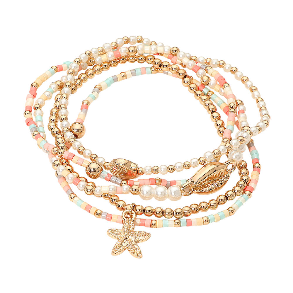Details • Size : 0.7" H • Stretchable • Elevate your summer look with this elegant layered beaded bracelet set featuring starfish, shell, and sea-inspired charms. Perfect for beach days or casual outings, this chic accessory adds a coastal touch to any outfit while offering a lightweight, comfortable fit. • Lead and Nickel Compliant