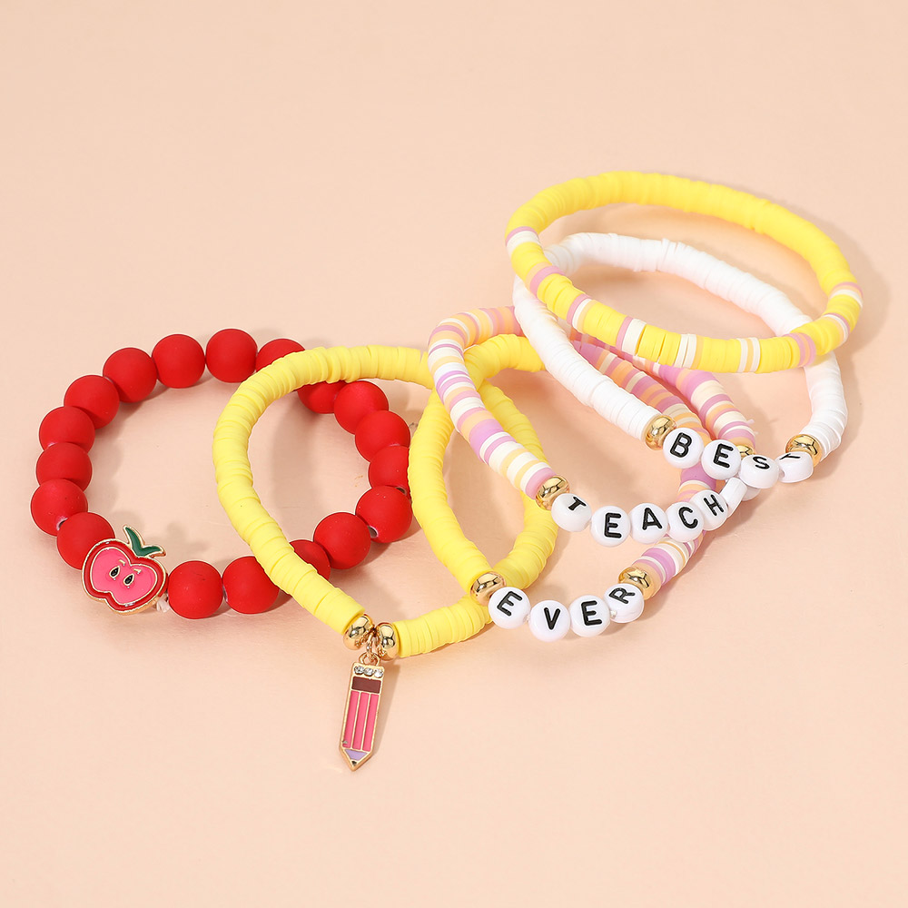 6PCS - BEST TEACHER EVER Message Pencil Apple Charm Heishi Beaded Stretch Multi Layered Bracelets 6PCS - BEST TEACHER EVER Message Pencil Apple Charm Heishi Beaded Stretch Multi Layered Bracelets 6PCS - BEST TEACHER EVER Message Pencil Apple Charm Heishi Beaded Stretch Multi Layered Bracelets