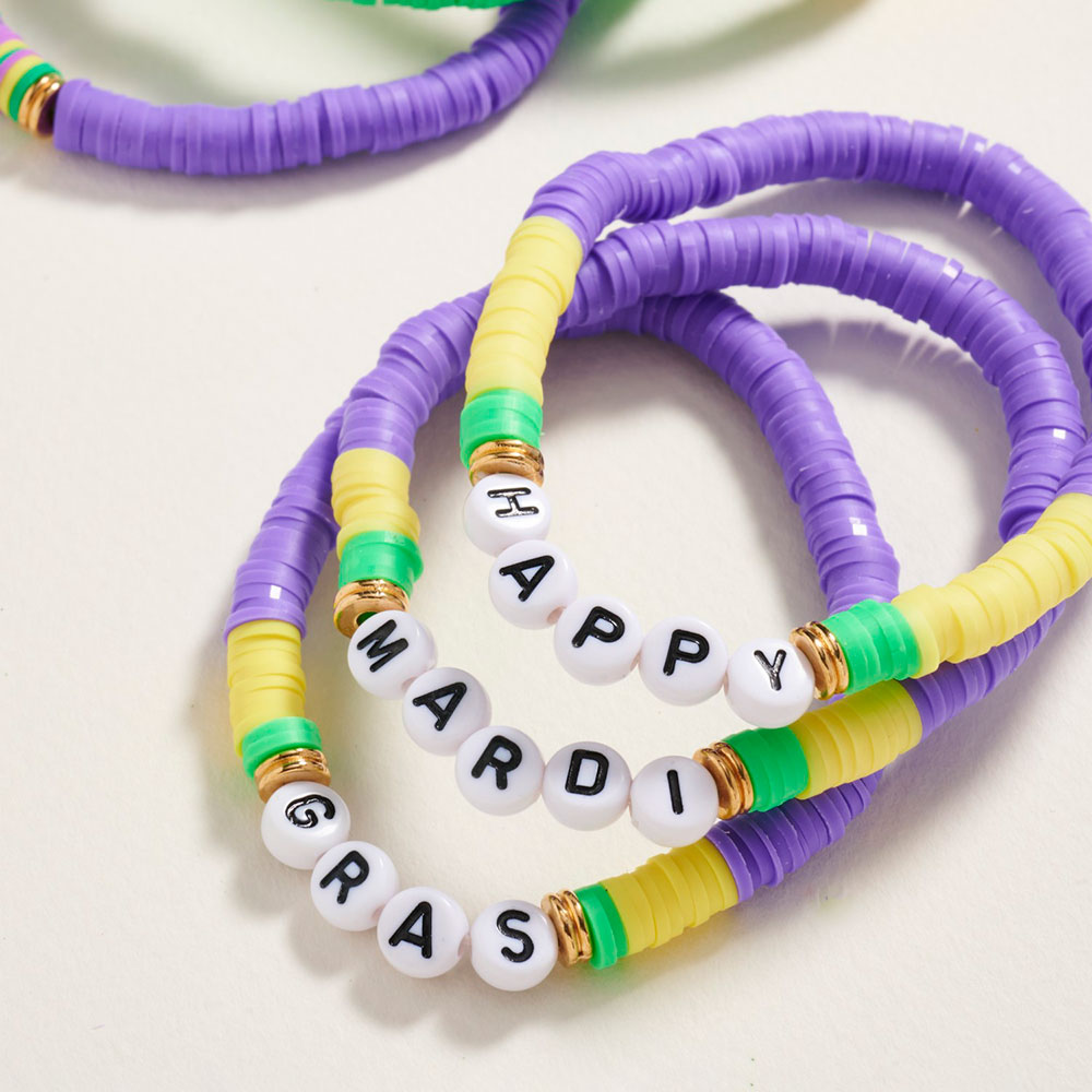 • This Mardi Gras beaded stretch bracelet set features festive letter accents and playful round beads for a lively, celebratory look. Perfect for parties, parades, or casual fun, these easy-to-wear bracelets bring cheerful charm and vibrant personality to any ensemble.