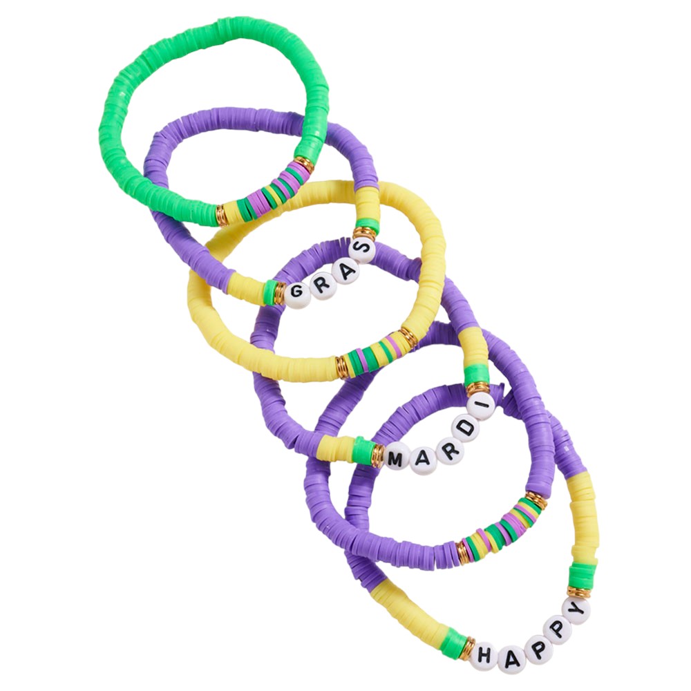 6PCS - HAPPY MARDI GRAS Message Heishi Beaded Stretch Multi Layered Bracelets 6PCS - HAPPY MARDI GRAS Message Heishi Beaded Stretch Multi Layered Bracelets 6PCS - HAPPY MARDI GRAS Message Heishi Beaded Stretch Multi Layered Bracelets