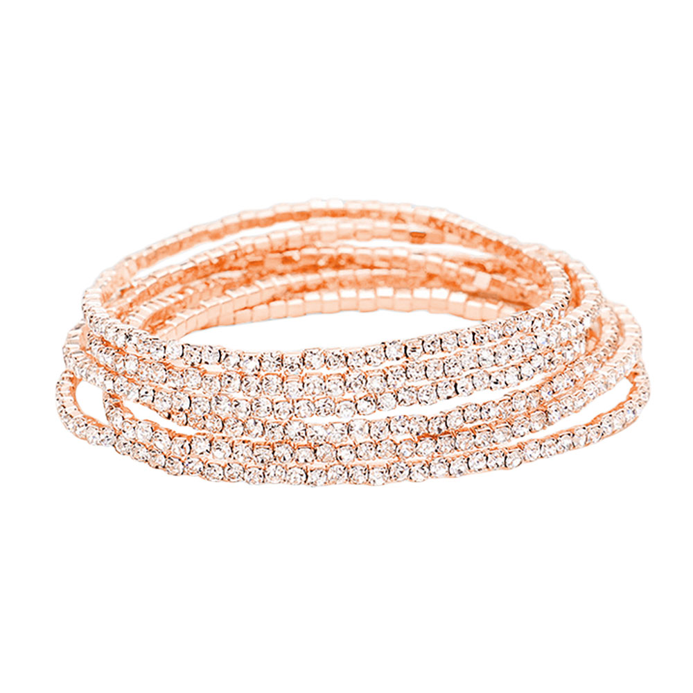 6PCS - Rhinestone Multi Layered Stretch Evening Bracelets