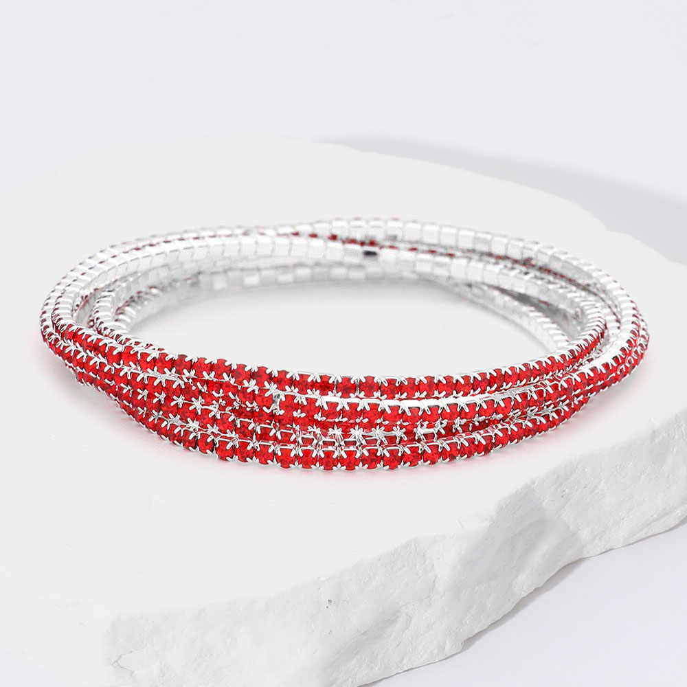 6PCS - Rhinestone Multi Layered Stretch Evening Bracelets