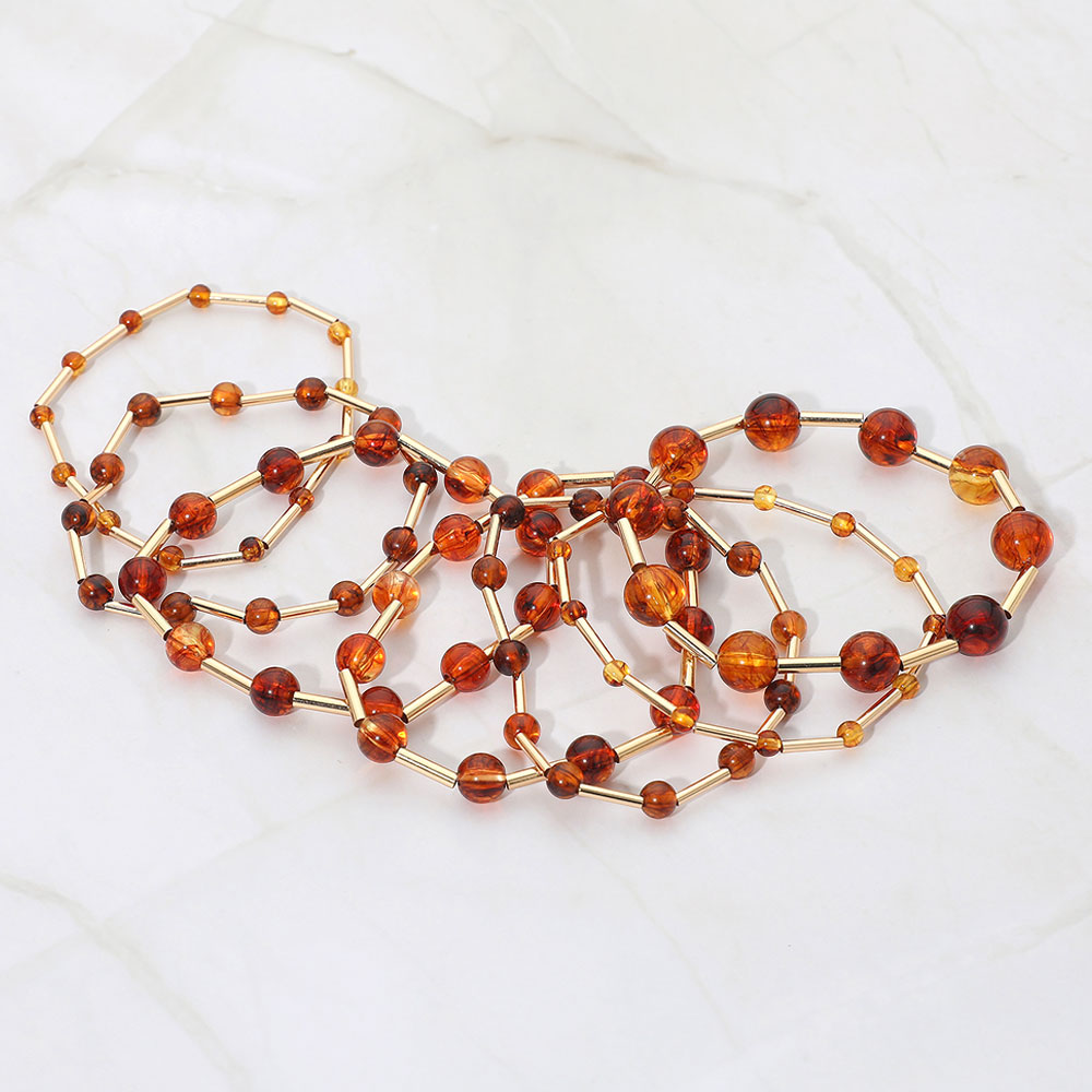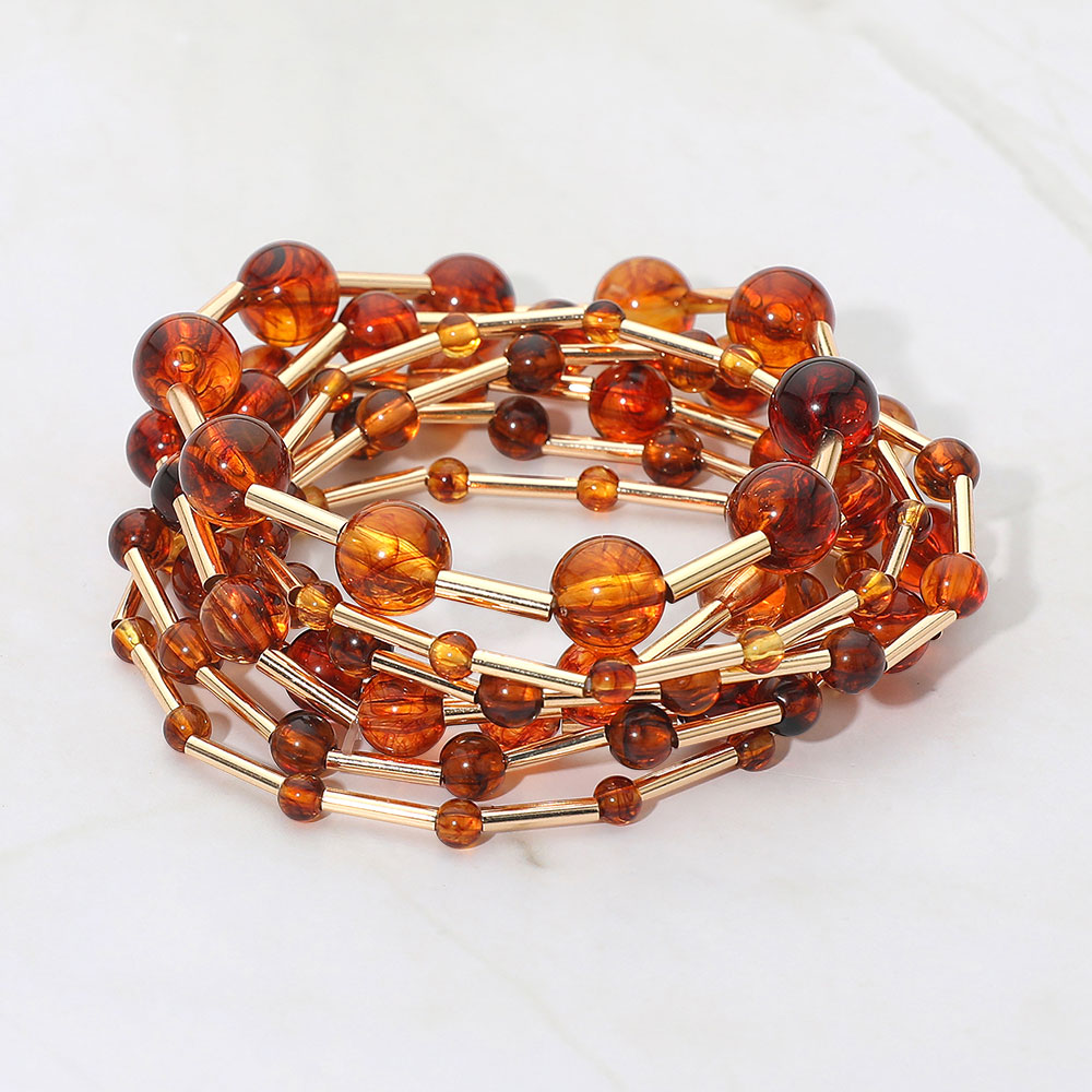 7PCS - Resin Ball Metal Bar Beaded Stretch Multi Layered Bracelets