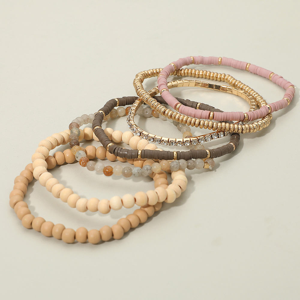 7PCS - Wood Ball Heishi Beaded Stretch Bracelets