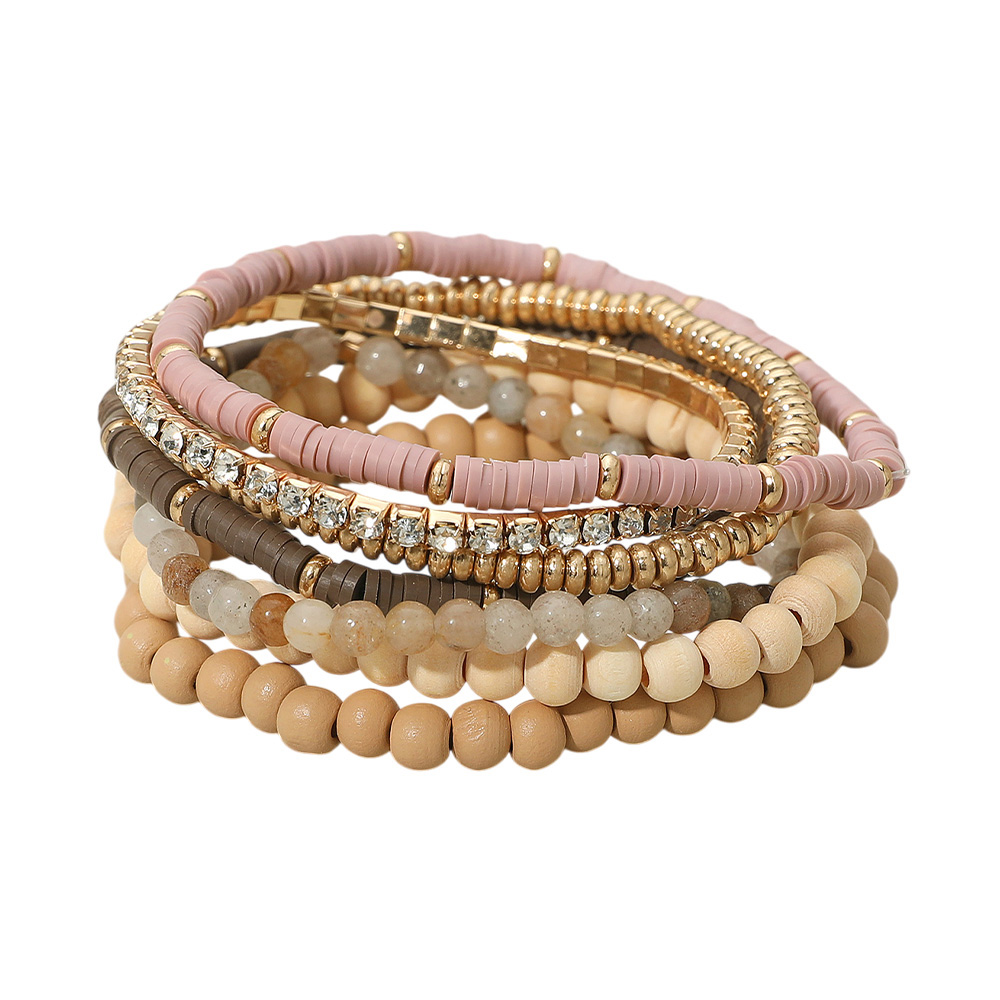 • This multi-strand stretch bracelet set combines a mix of smooth beads, metallic accents, and shimmering details for a stylish layered look. Easy to slip on, it offers comfort and versatility, making it perfect for stacking or wearing alone as a bold statement accessory.
