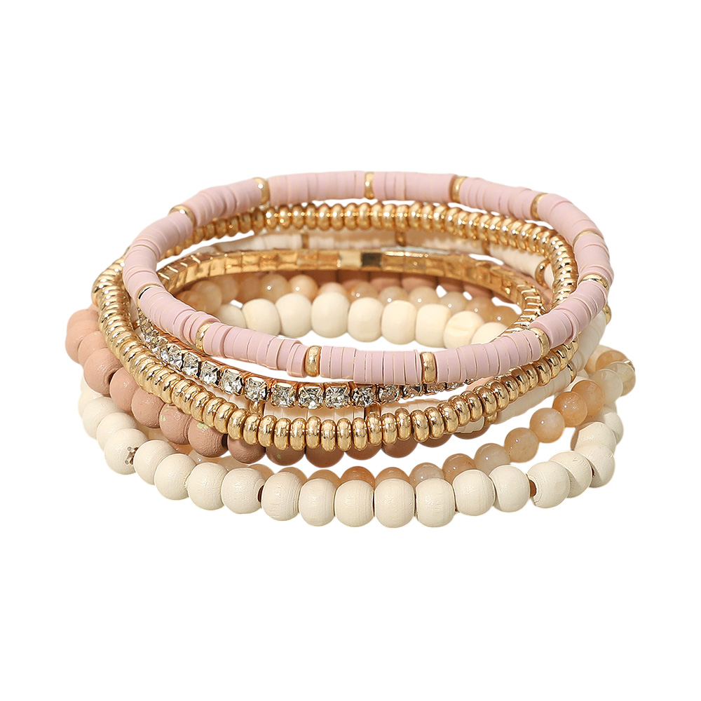 Details • Size : 1.3" H • Stretchable • This multi-strand stretch bracelet set combines a mix of smooth beads, metallic accents, and shimmering details for a stylish layered look. Easy to slip on, it offers comfort and versatility, making it perfect for stacking or wearing alone as a bold statement accessory. • Lead and Nickel Compliant