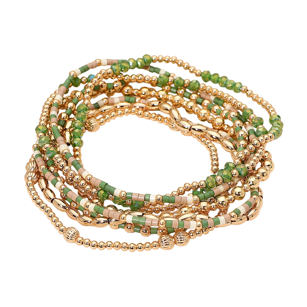 8PCS - Seed Beaded Stretch Multi Layered Bracelets