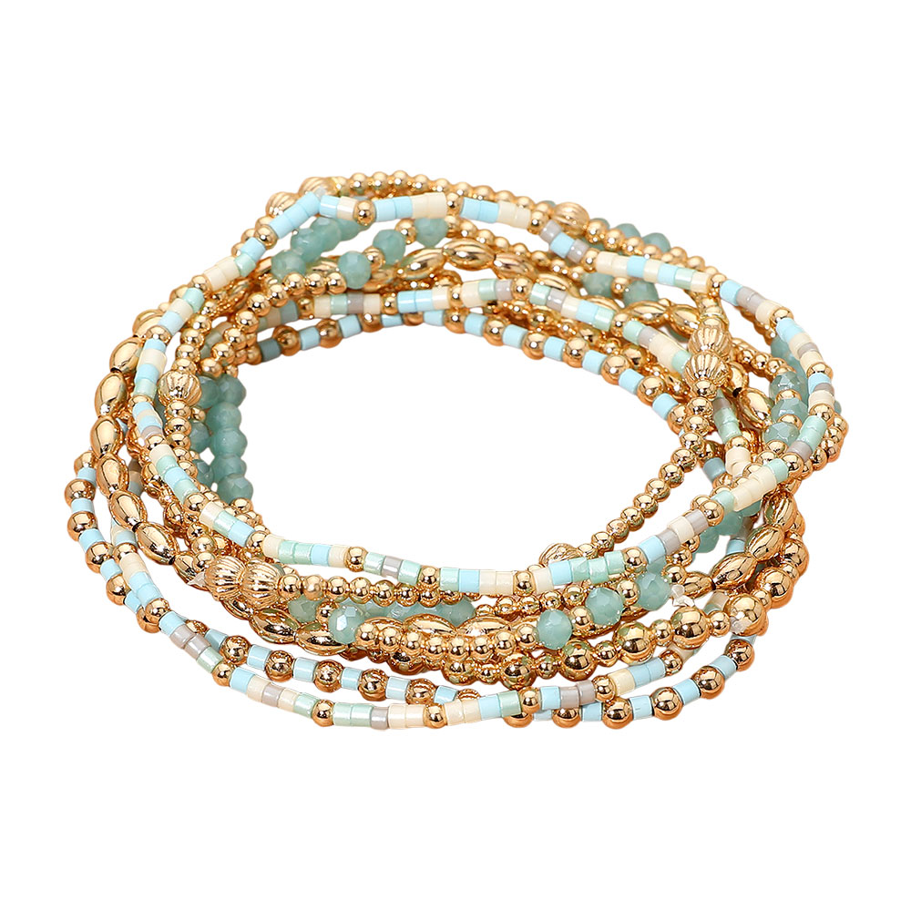 8PCS - Seed Beaded Stretch Multi Layered Bracelets