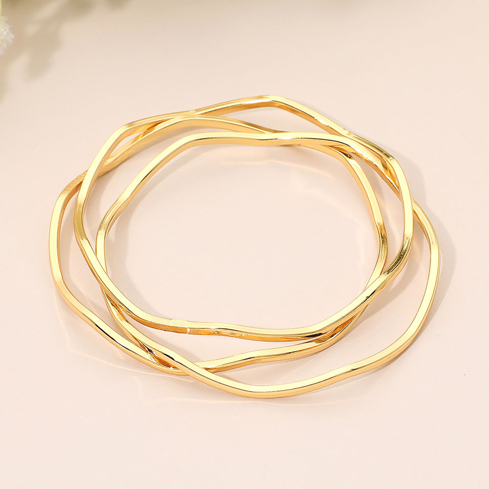 Details • Size : 0.25" H, 24" D • Water Resistant • Elegant layered bangle bracelet set featuring softly textured, organic-shaped bands for subtle dimension and shine. Designed to elevate everyday looks or complete polished outfits, this versatile stack can be worn together for a statement or mixed effortlessly with other favorites. • Hypoallergenic • Stainless Steel