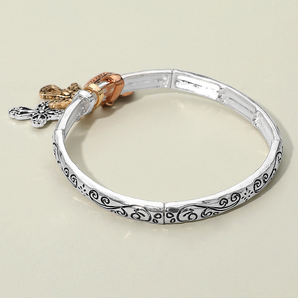 John 3:16 Message Angel Heart Cross Charm Stretch Bracelet