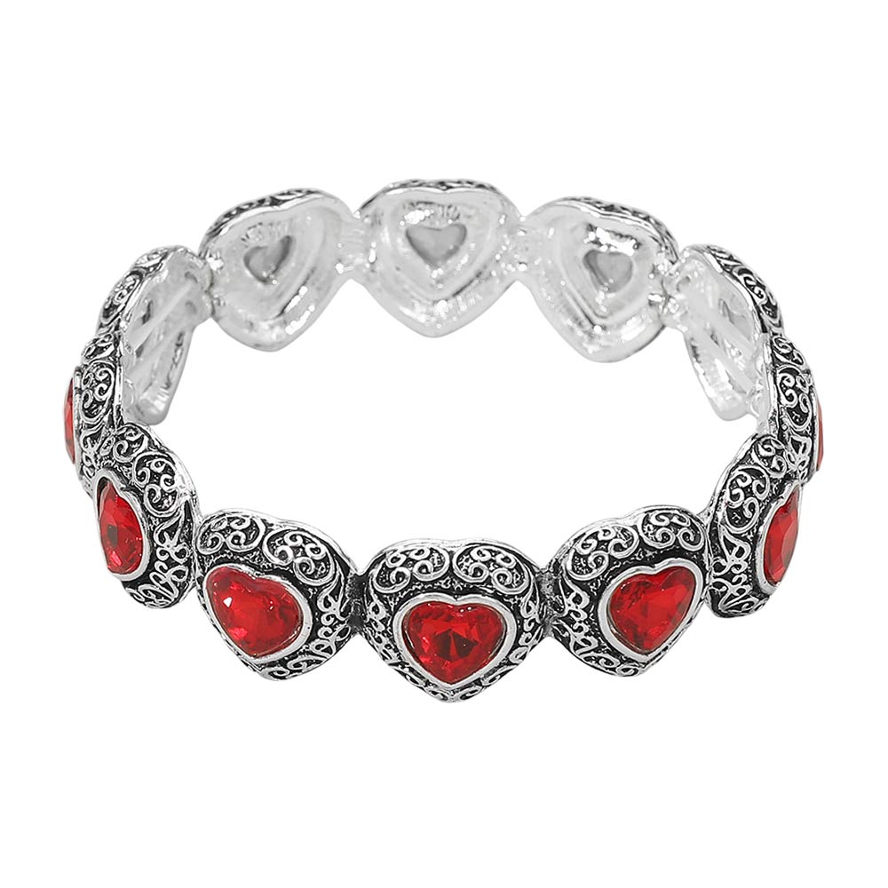 Antique Metal Scrollwork Frame Heart Tile Beaded Stretch Bracelet