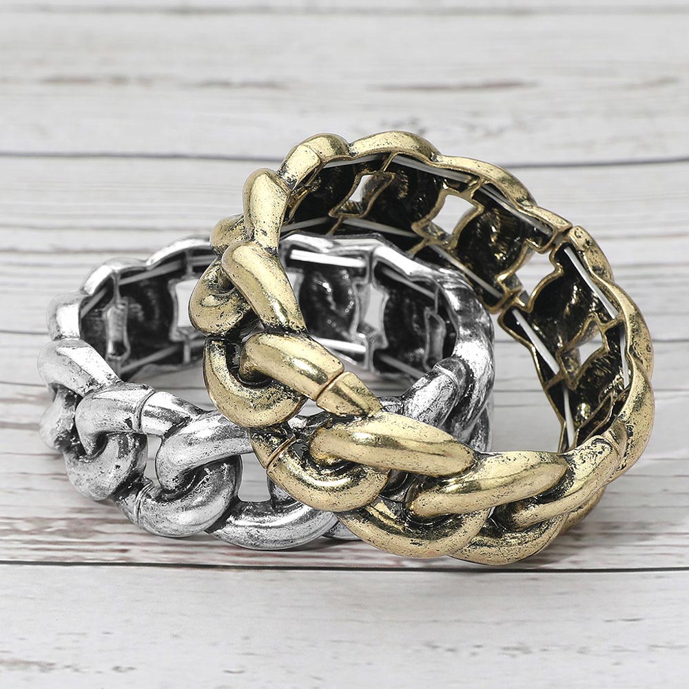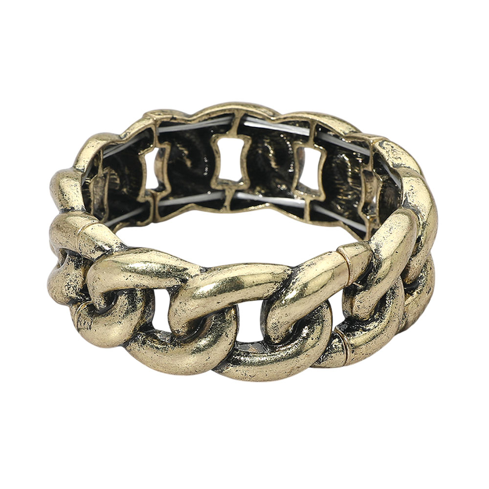 Details • Size : 0.9" H • Stretchable • Bold chunky chain link bracelet featuring an oversized interlocking design that delivers a strong statement look. The stretch construction allows for easy slip-on wear and a comfortable fit. Perfect for elevating everyday outfits, layering with other bracelets, or adding a modern edge to curated boutique accessory collections. • Lead and Nickel Compliant