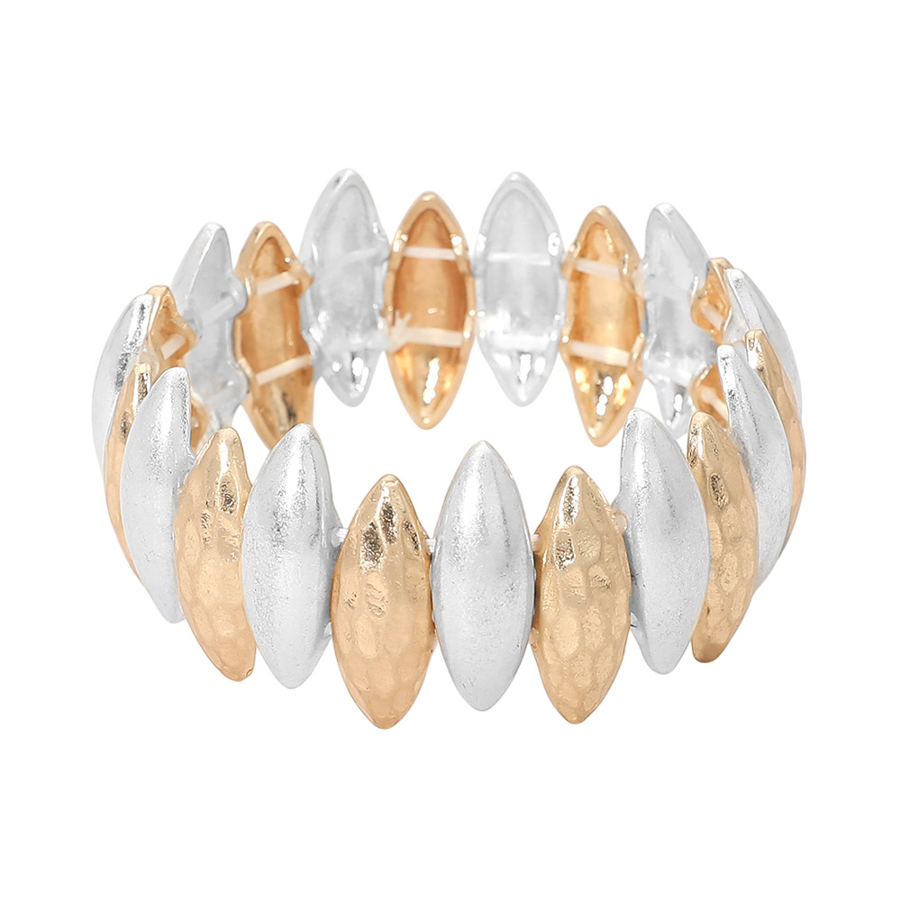 Bold Hammered Metal Marquise Beaded Stretch Bracelet