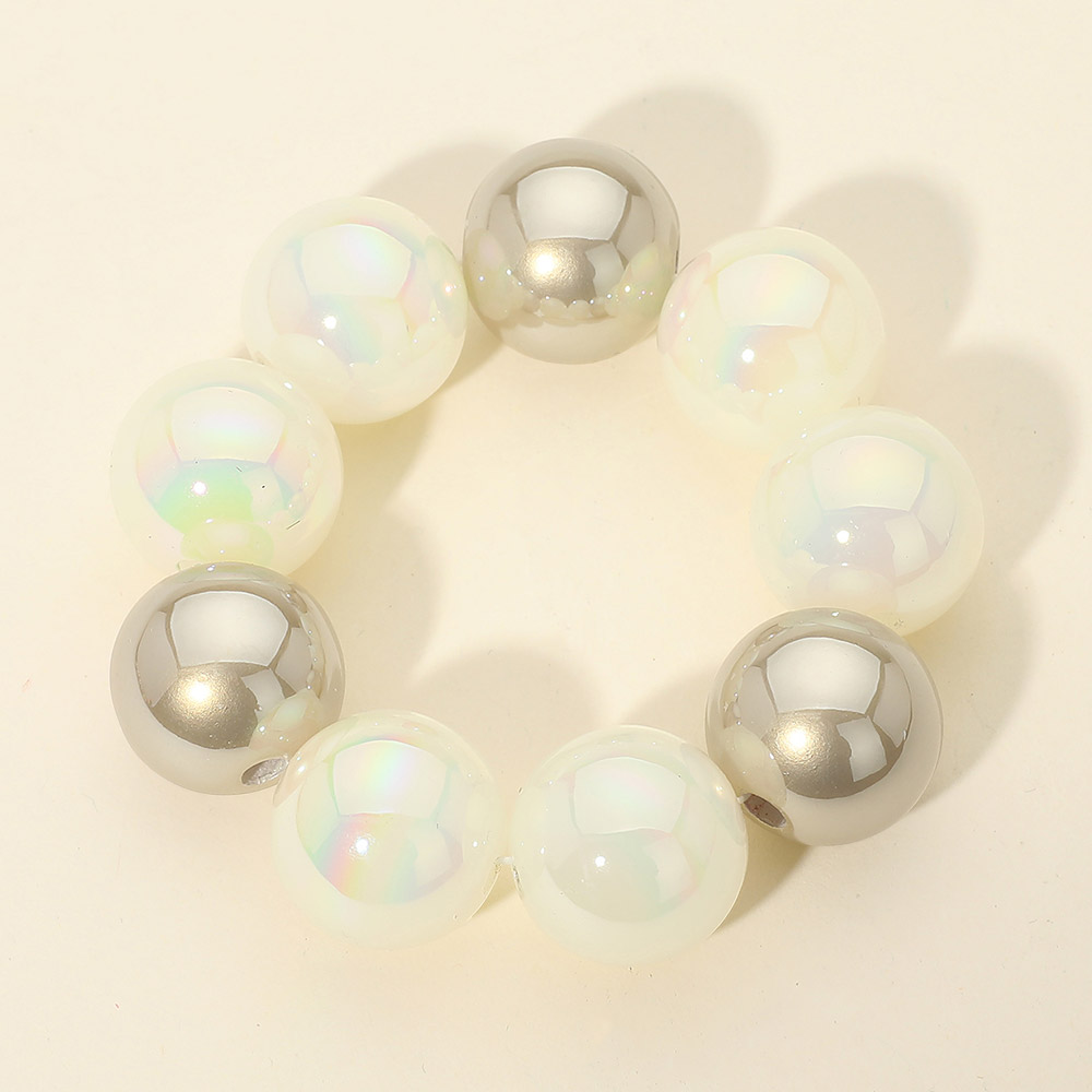Metal Ball Bold Marbled Resin Ball Beaded Stretch Bracelet