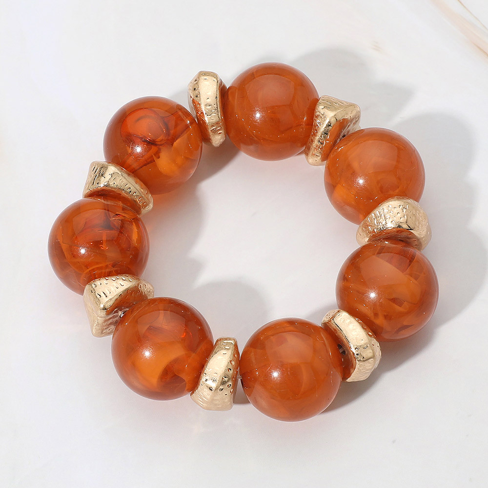 • This chunky stretch bracelet showcases rich round beads accented with textured metallic spacers for a bold, artistic look. Effortlessly stylish and comfortable to wear, it adds a touch of modern sophistication to both everyday outfits and statement ensembles.