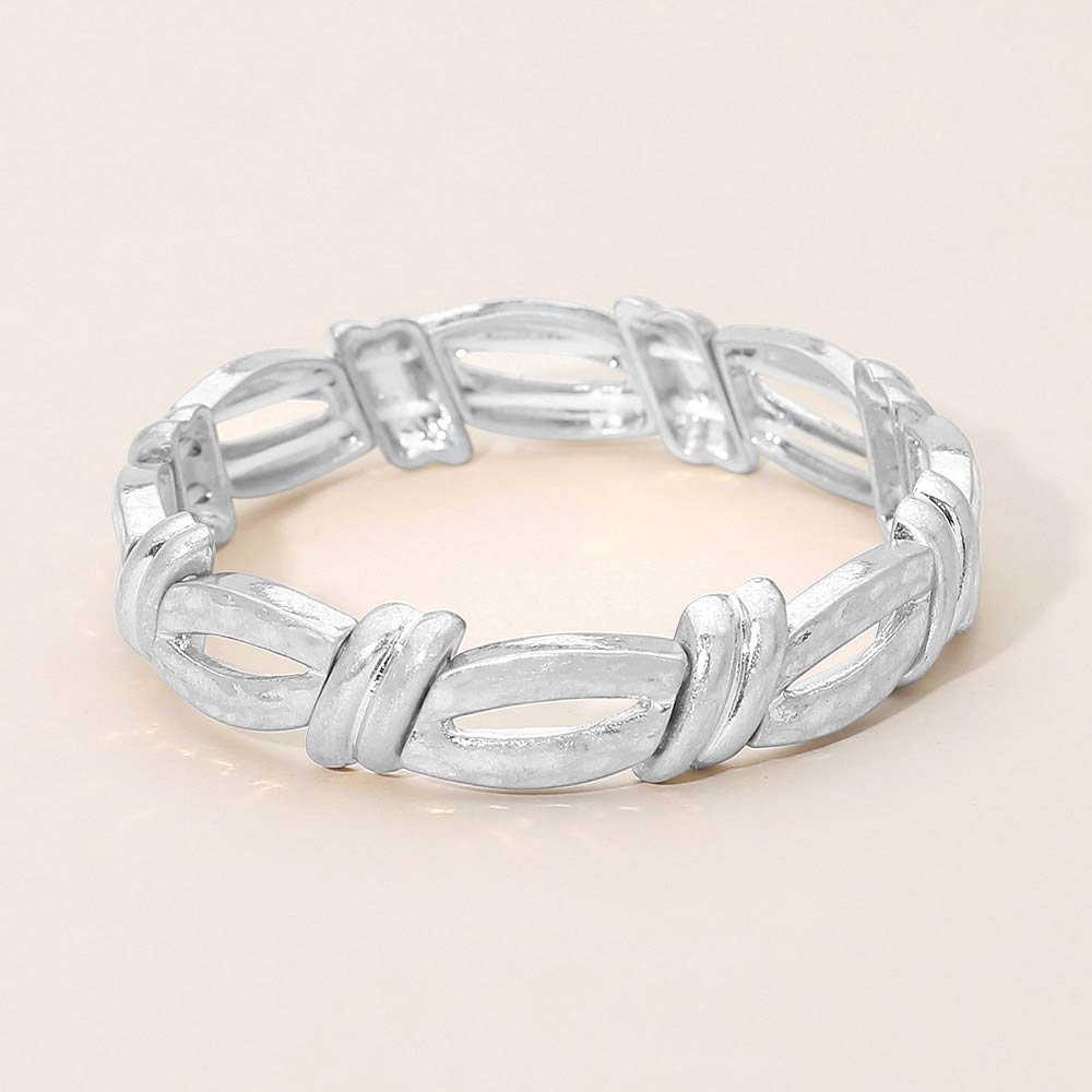 Brushed Metal Open Link Stretch Bracelet