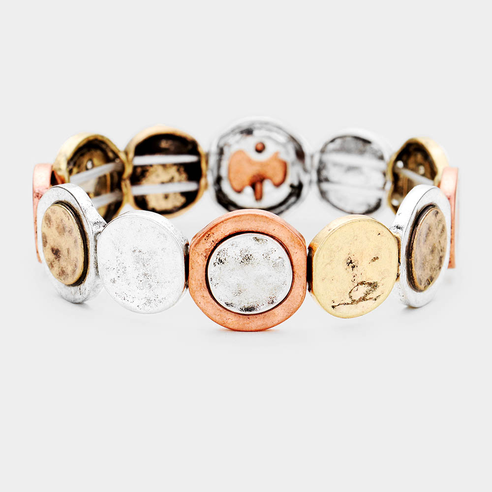 6PCS - Multi Layered Strand Bead Charm Stretch Bracelets
