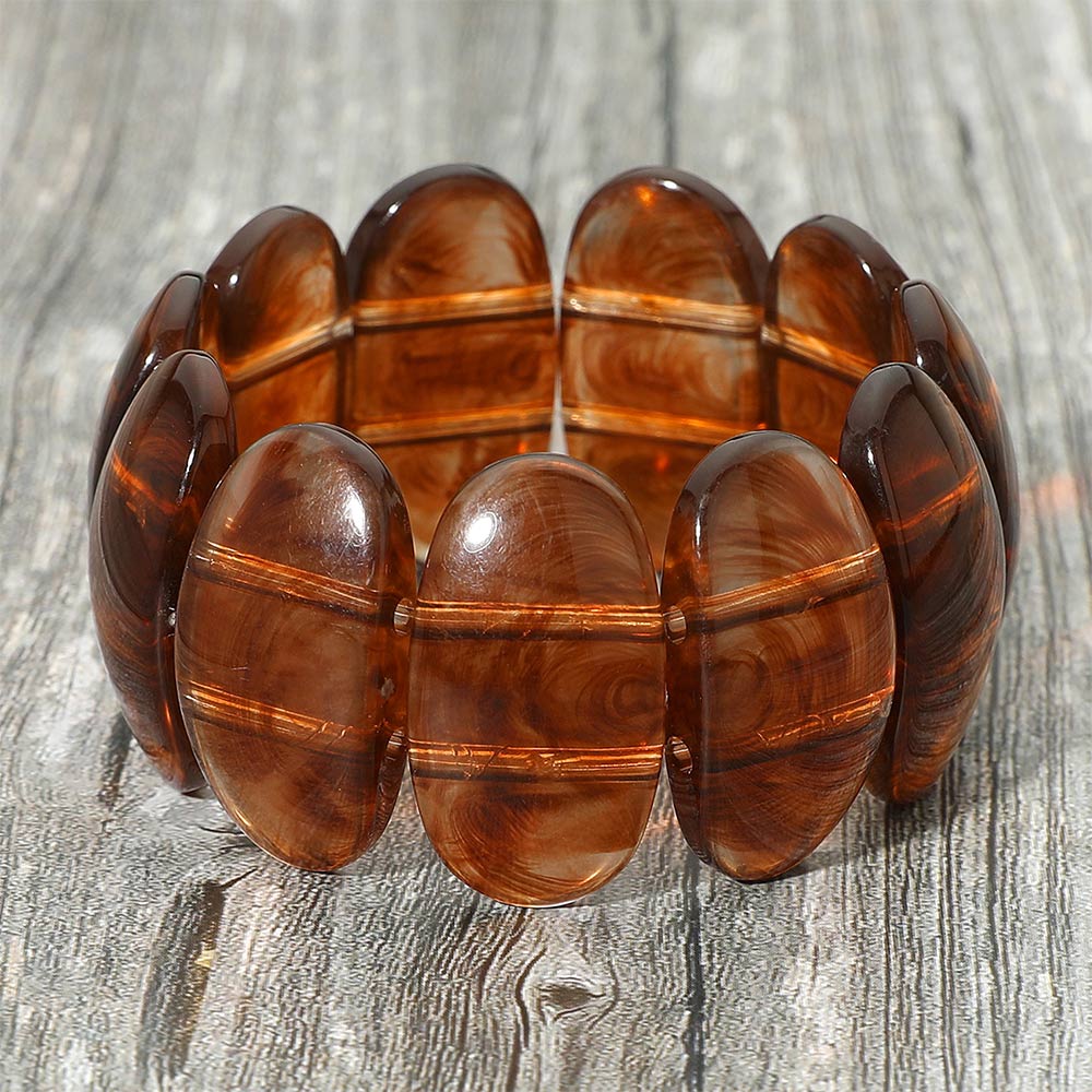 Chunky Oval Resin Panel Beaded Stretch Bracelet Chunky Oval Resin Panel Beaded Stretch Bracelet